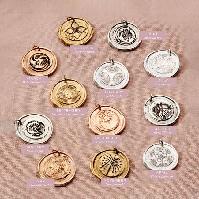 Japanese Wax Seal Birth Flower Necklace
