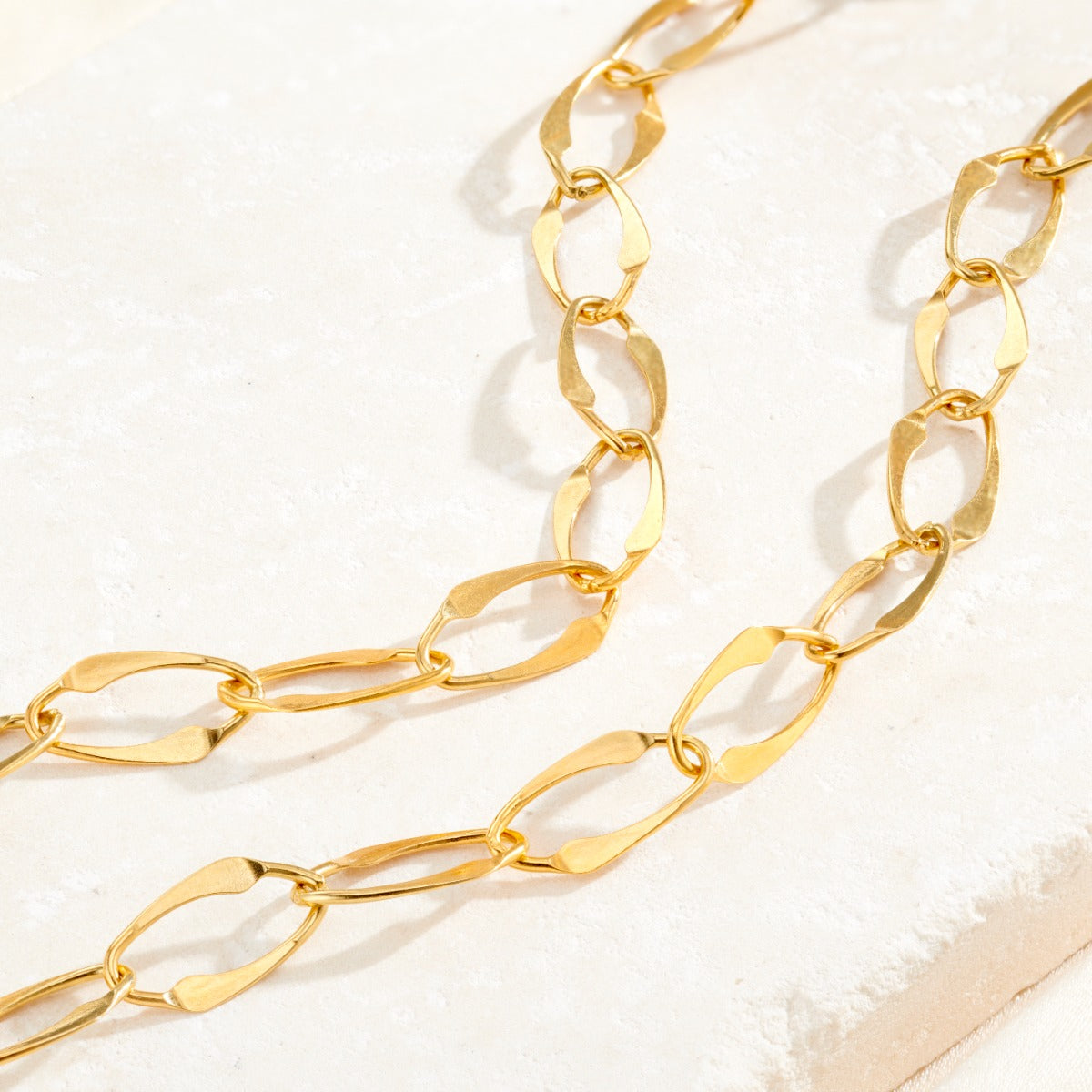 This unique necklace is made from solid sterling silver. The design features unique large hammered links interlinked to from a gorgeous chain necklace that we love! It's a true statement piece which is sure ...
