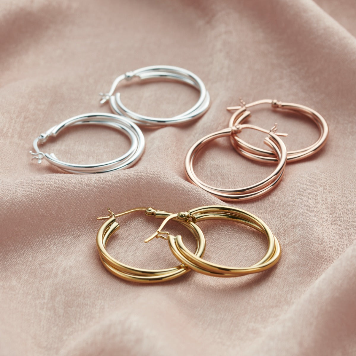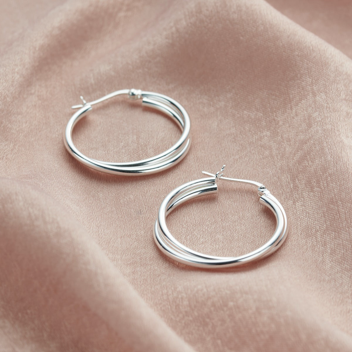 The design of these unique hoop earrings has taken inspiration from our popular interlinking hoop range. Cast from Sterling Silver to show two hoops intertwining, each hoop is finished with a classic creole ...