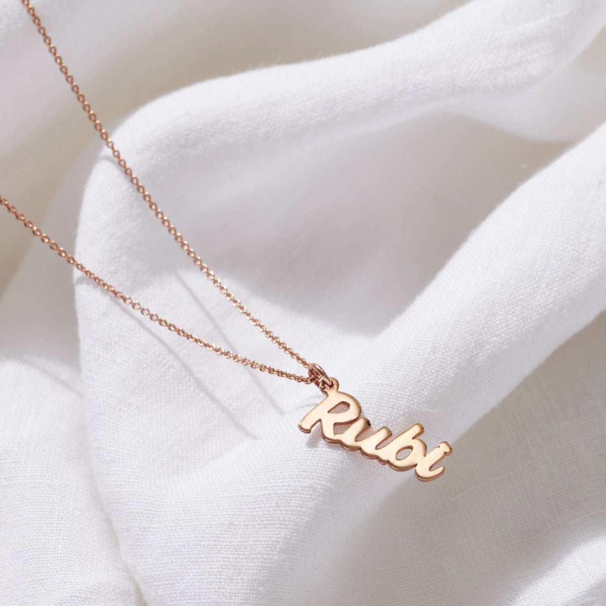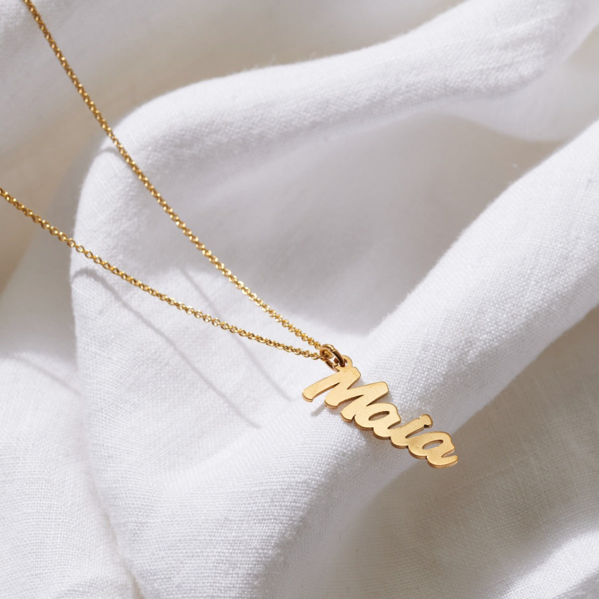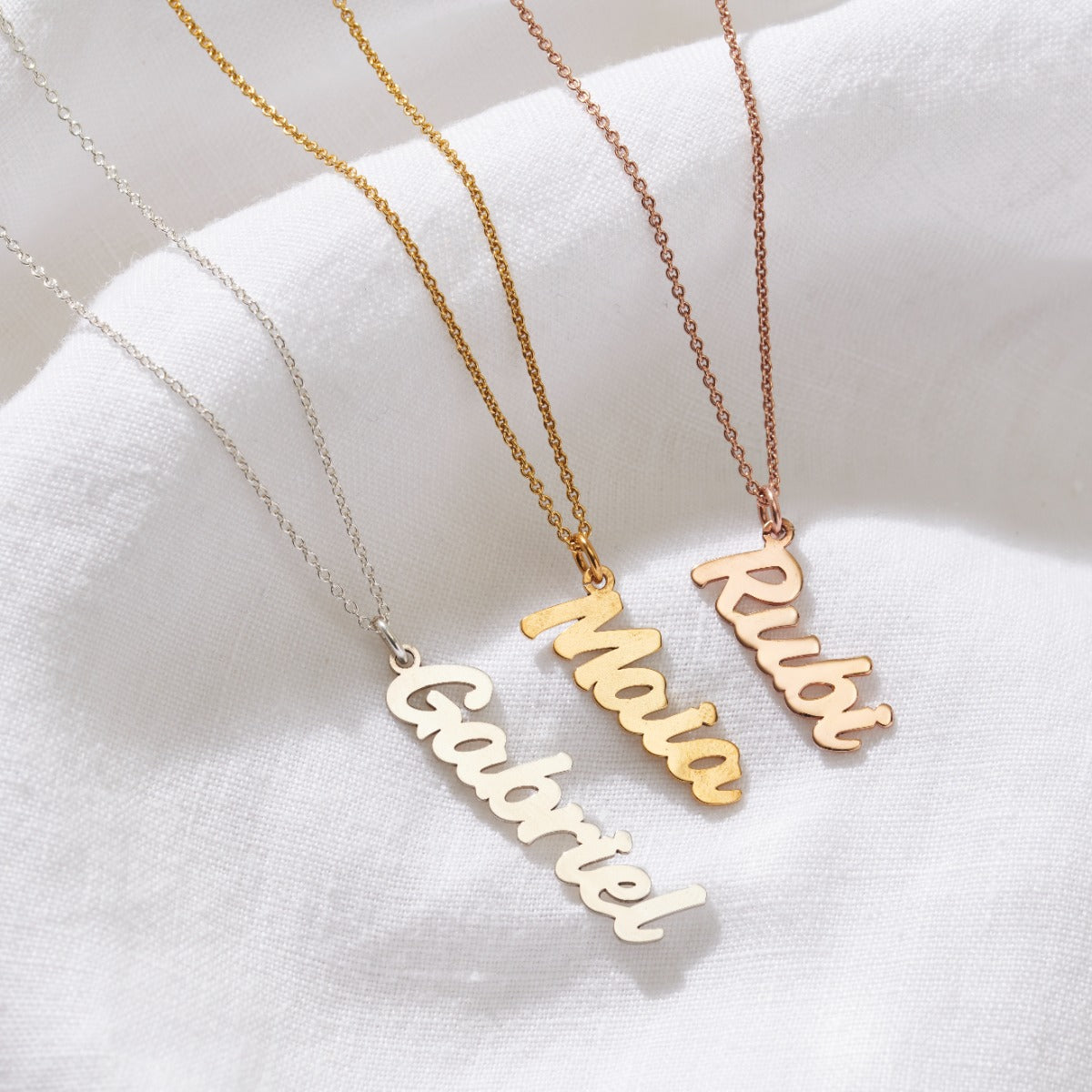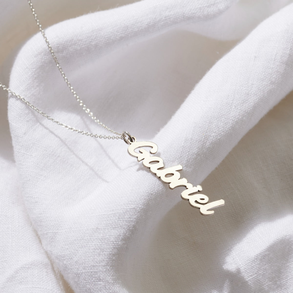 This gorgeous pendant necklace is the perfect personalised gift for a loved one. Our jewellers make each necklace in our workshop, cutting your name from solid sterling silver using our professional engravin...