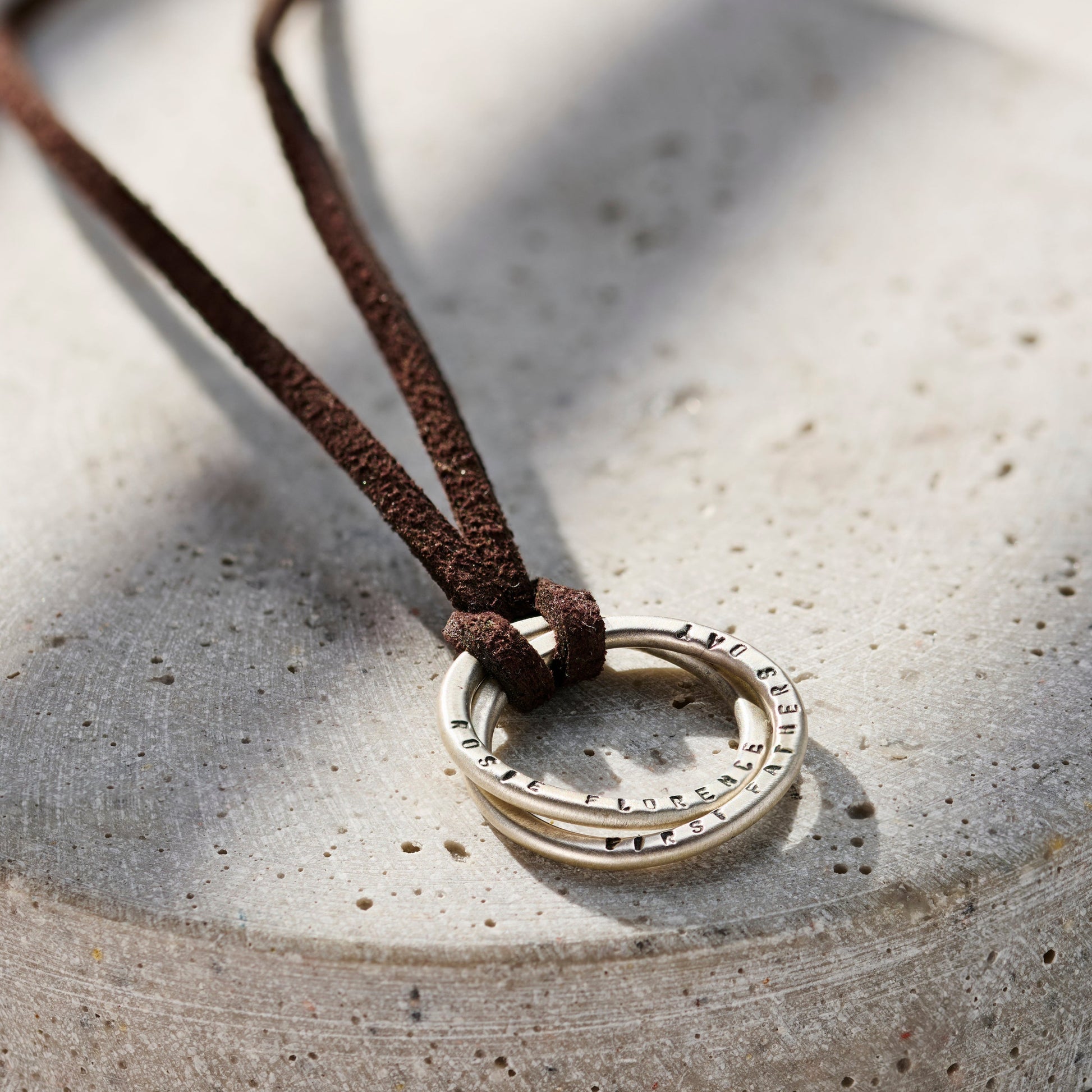 Mens Two Ring Russian Leather Cord Necklace