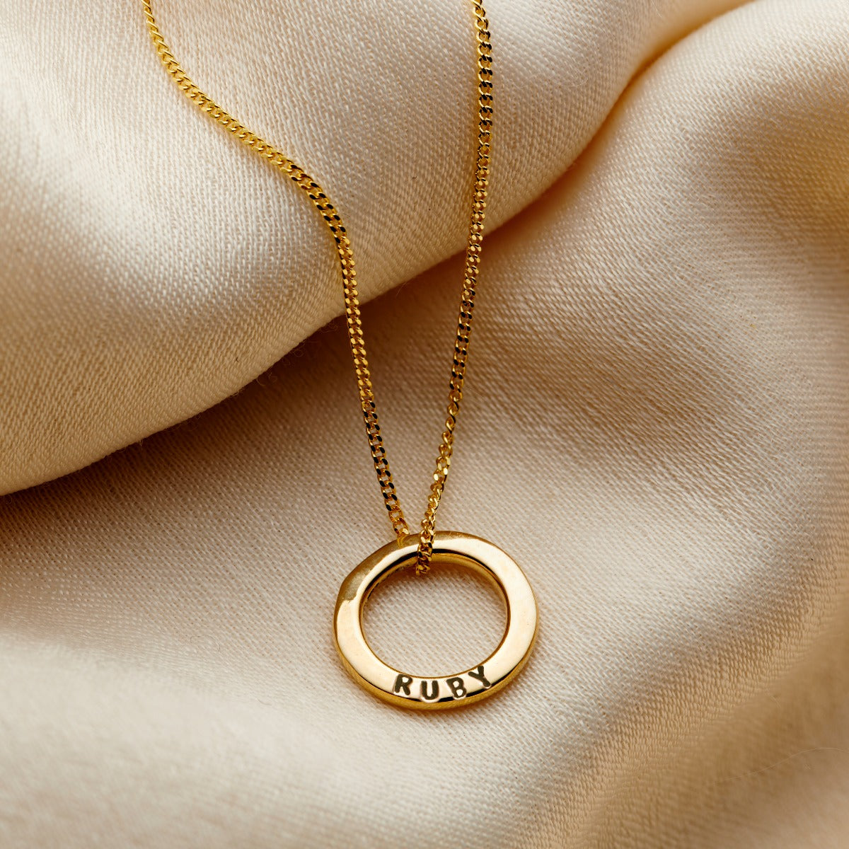This gorgeous necklace is made in our Brighton workshop by our expert jewellers. Crafted from 9ct gold this design features a micro version of our ever-popular message charm. The classic circle pendant can b...