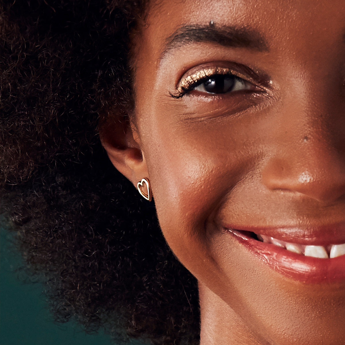 The Open Mini Heart Stud Earrings add a beautiful finishing touch to any outfit. Handcrafted from sterling silver with optional 18ct rose or 18ct yellow gold plating, the earrings fasten comfortably and secu...