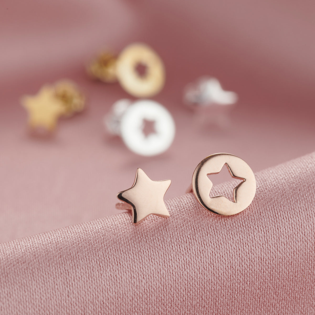 These stunning celestial-inspired stud earrings are made from solid sterling silver. Each set of earrings is formed of a mismatch if two different stud designs. The perfect match for a stylish outfit for any...
