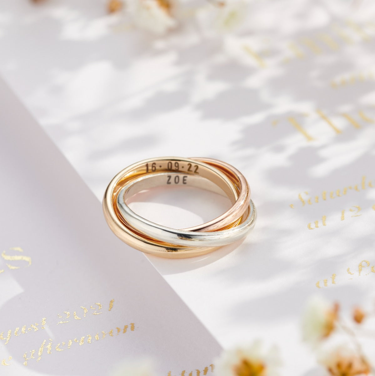 Mixed 9ct Gold Personalised Russian Wedding Ring