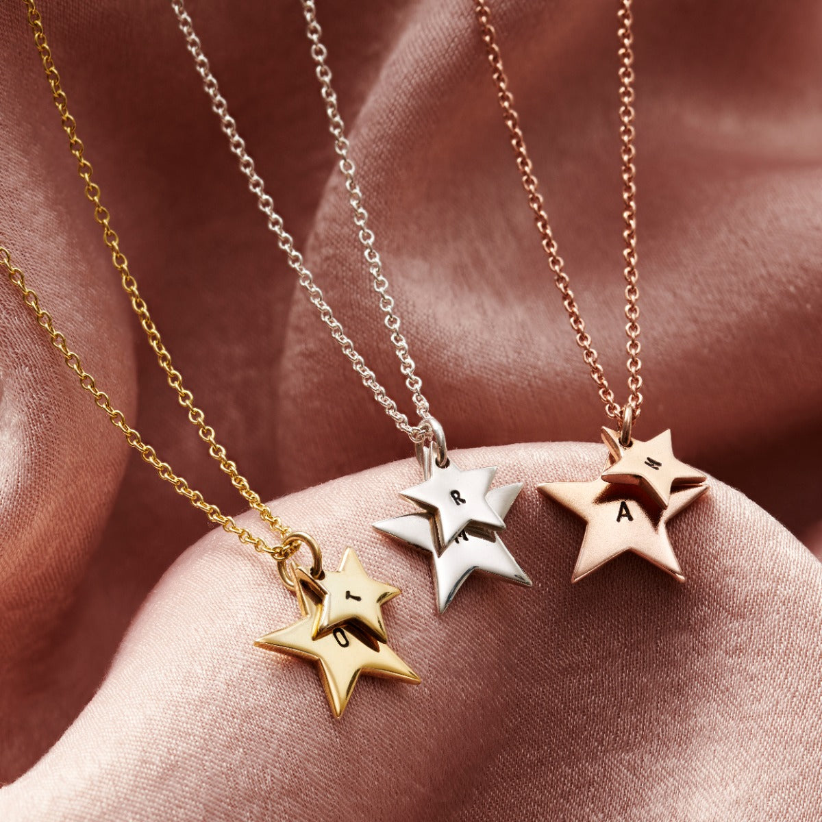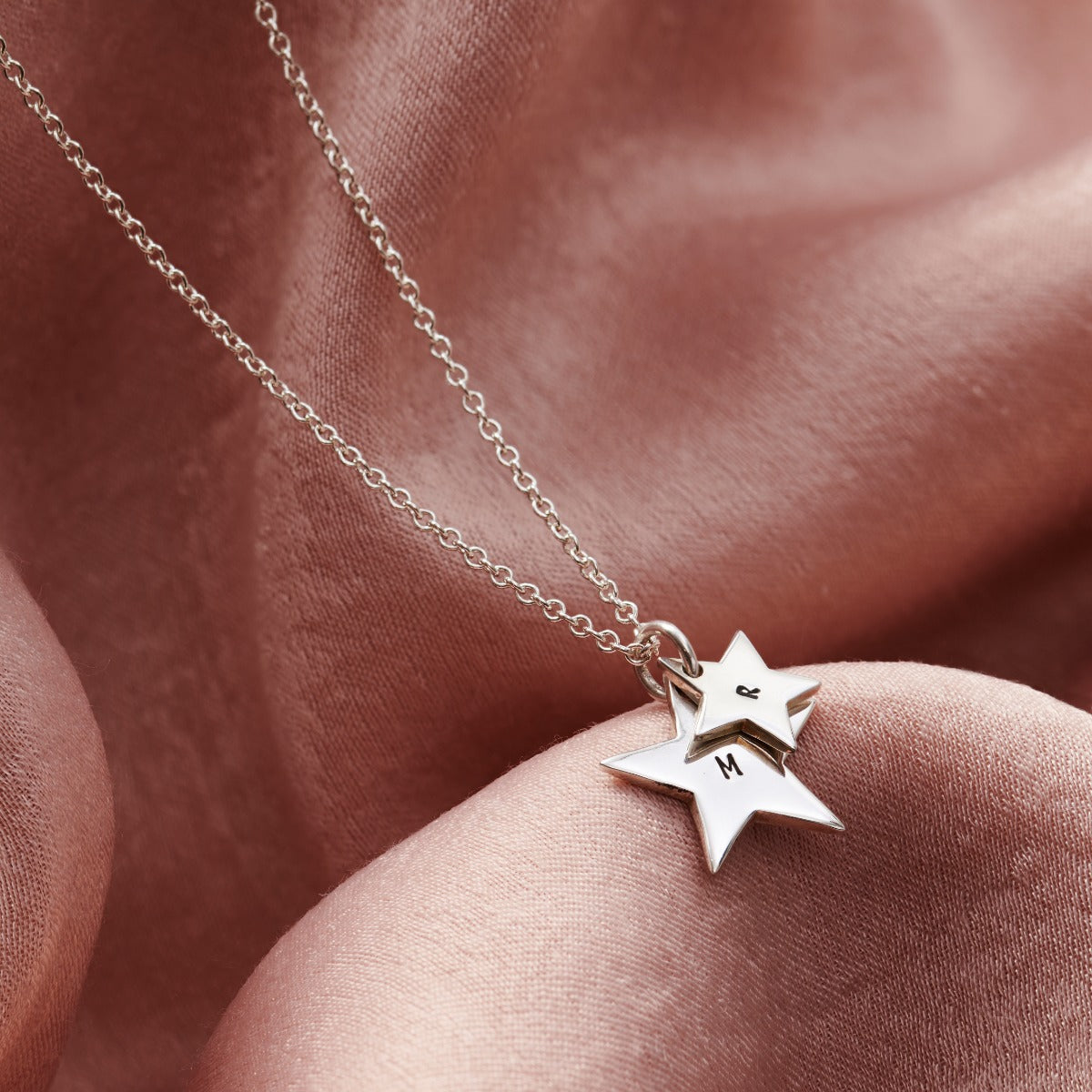 The perfect personalised gift for Mum. This silver necklace features small and medium star pendants, handmade by our expert jewellers. We can personalise each star with an initial. The Medium star symbolises...