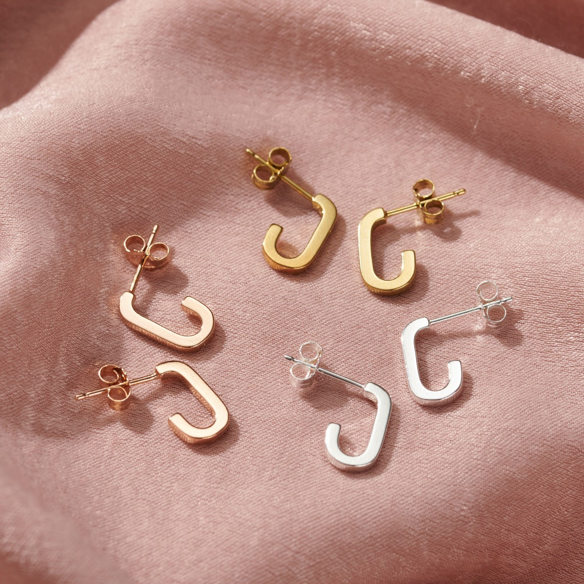 These gorgeous huggie earrings are made from Sterling Silver. We love the unique open hoop design which finishes any outfit with a touch of elegance. These stud earrings are finished with a classic butterfly...
