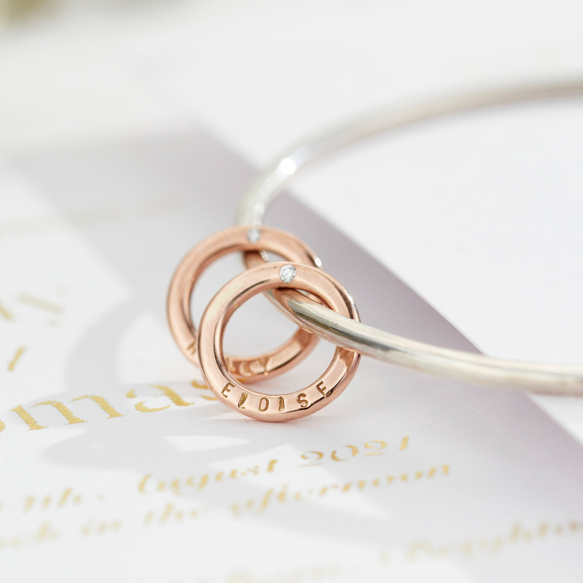 The stunning 9ct Gold Birthstone Two Mini Message & Silver Bangle is handcrafted and hand-stamped in our Brighton workshop. Subtle and stylish the unique piece makes the perfect bridal bangle. The sleek ...