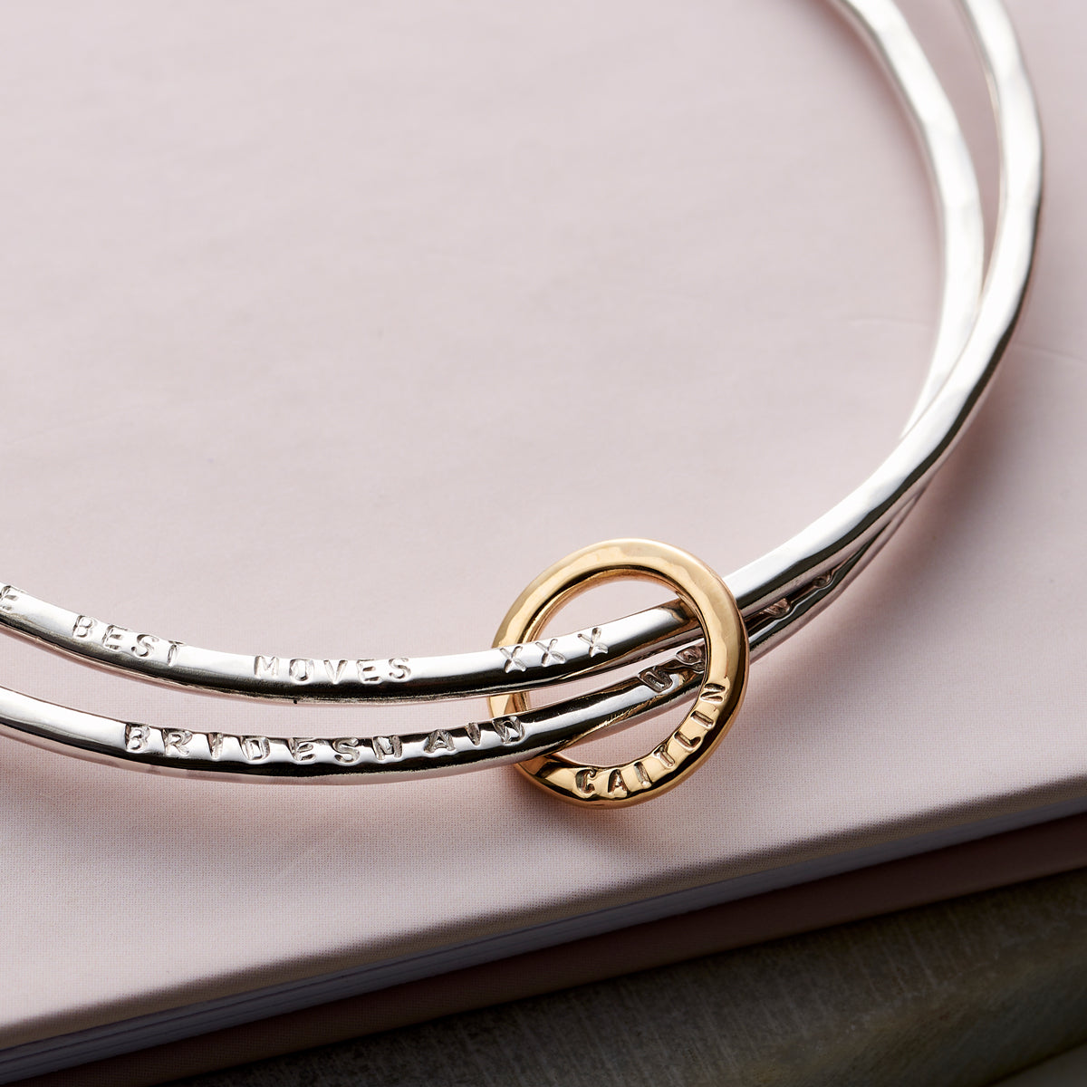 Based on our bestselling Personalised Double Bangle, the Personalised 9ct Gold & Silver Double Bangle features two sleek sterling silver bangles joined by an elegant solid 9ct gold ring. Classic with a c...