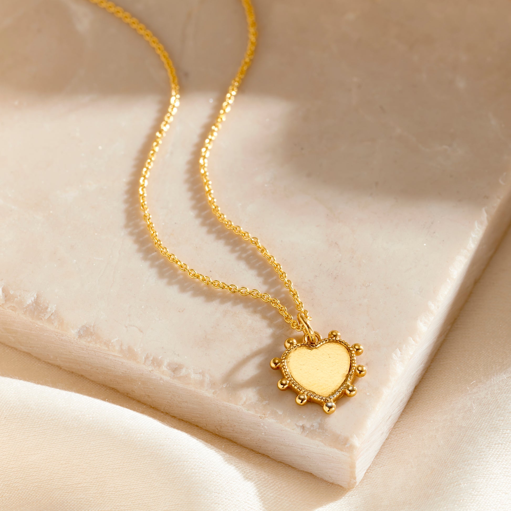 Gorgeous heart charm necklace crafted from sterling silver. The design features a heart charm with a stunning beaded design. On the reverse of the charm our jewellers can personalise the pendant with your wo...