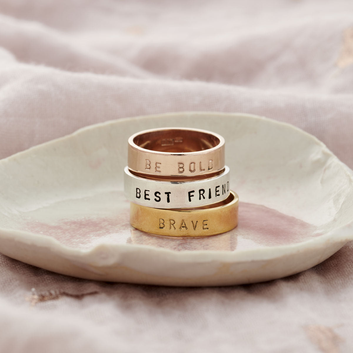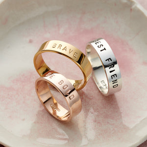 The simple Personalised Chunky Ring is a stunning sterling silver band personalised with your name, date, or special word, making it a wonderful gift for someone s...