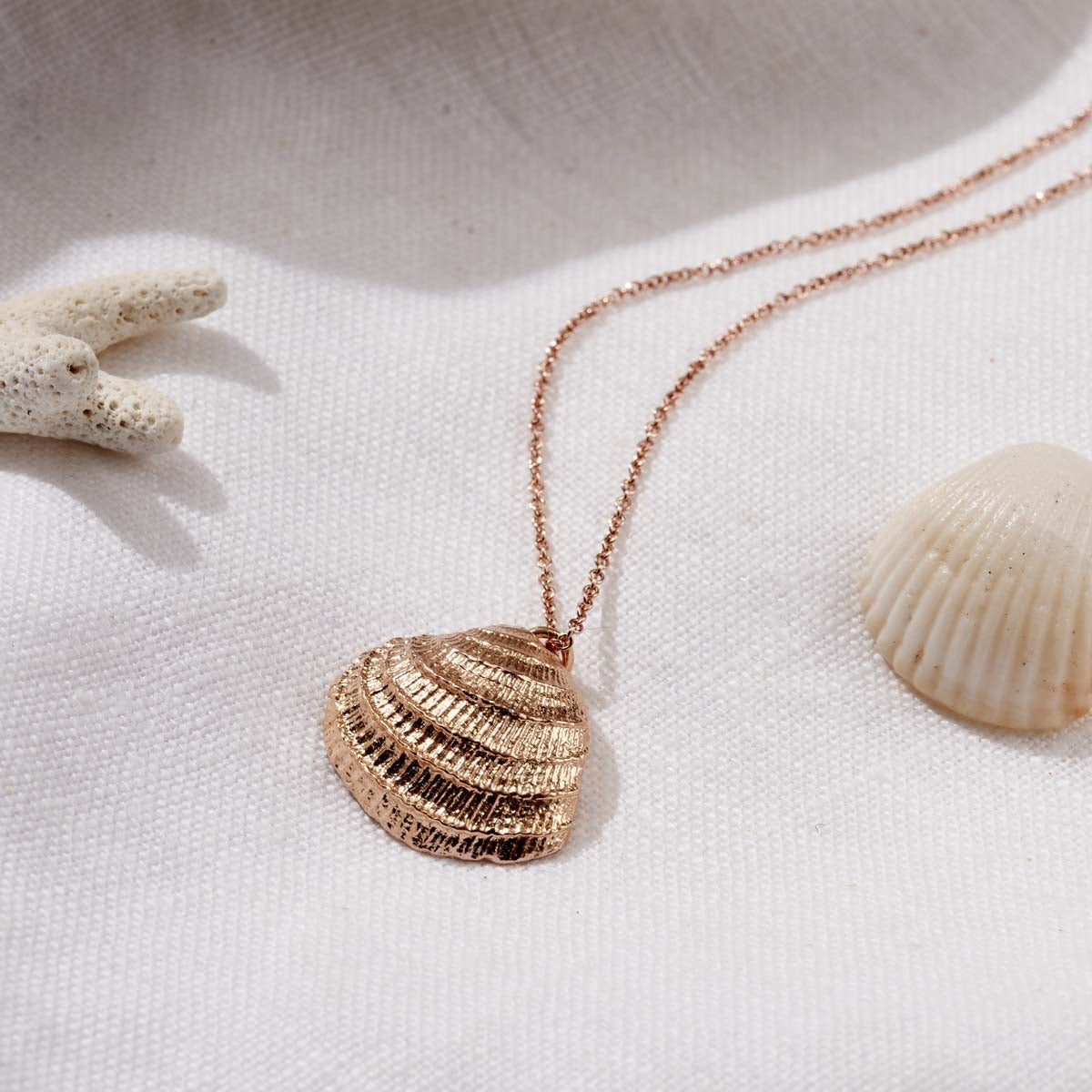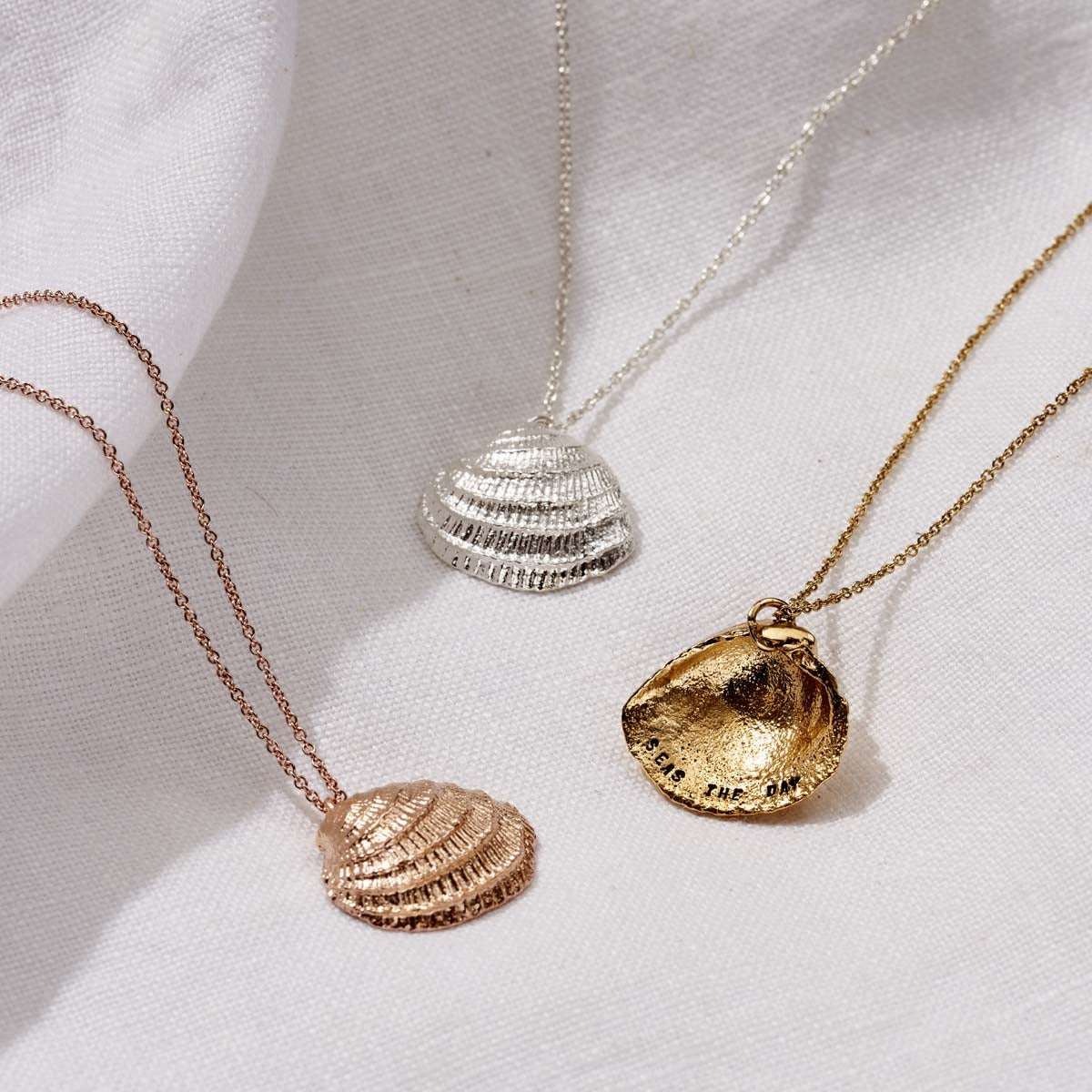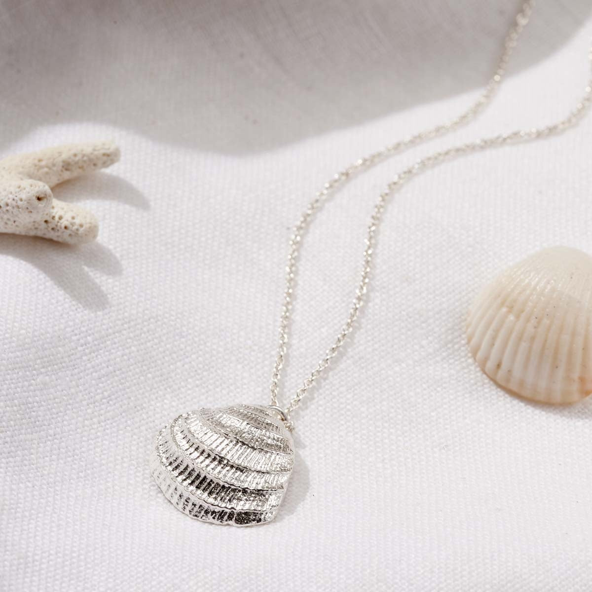 The Posh Totty Designs Personalised Clam Shell Necklace features a Sterling silver handmade shell on a fine silver chain. The shell pendant is pleasingly weighty, with deep grooves and ridges identical to a ...