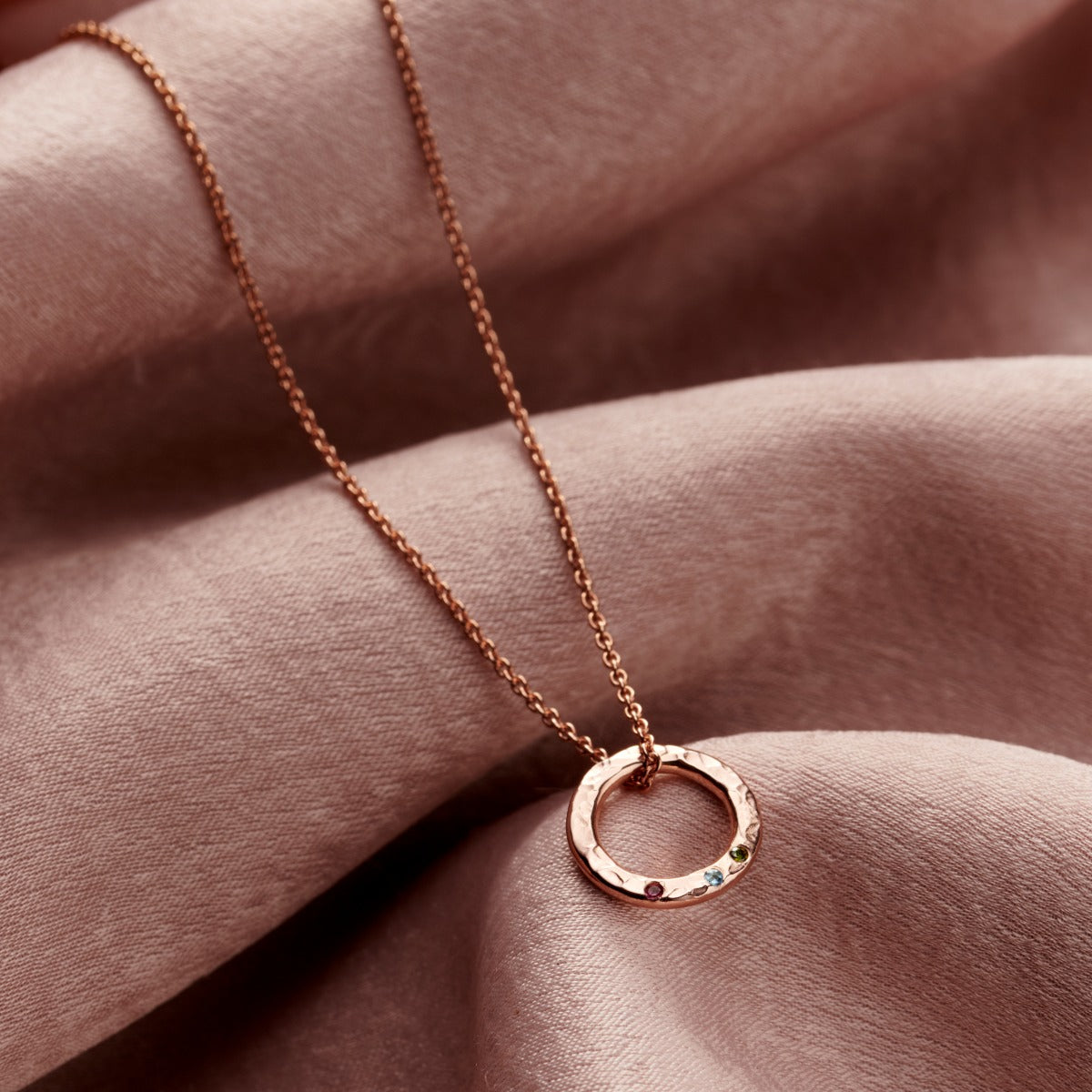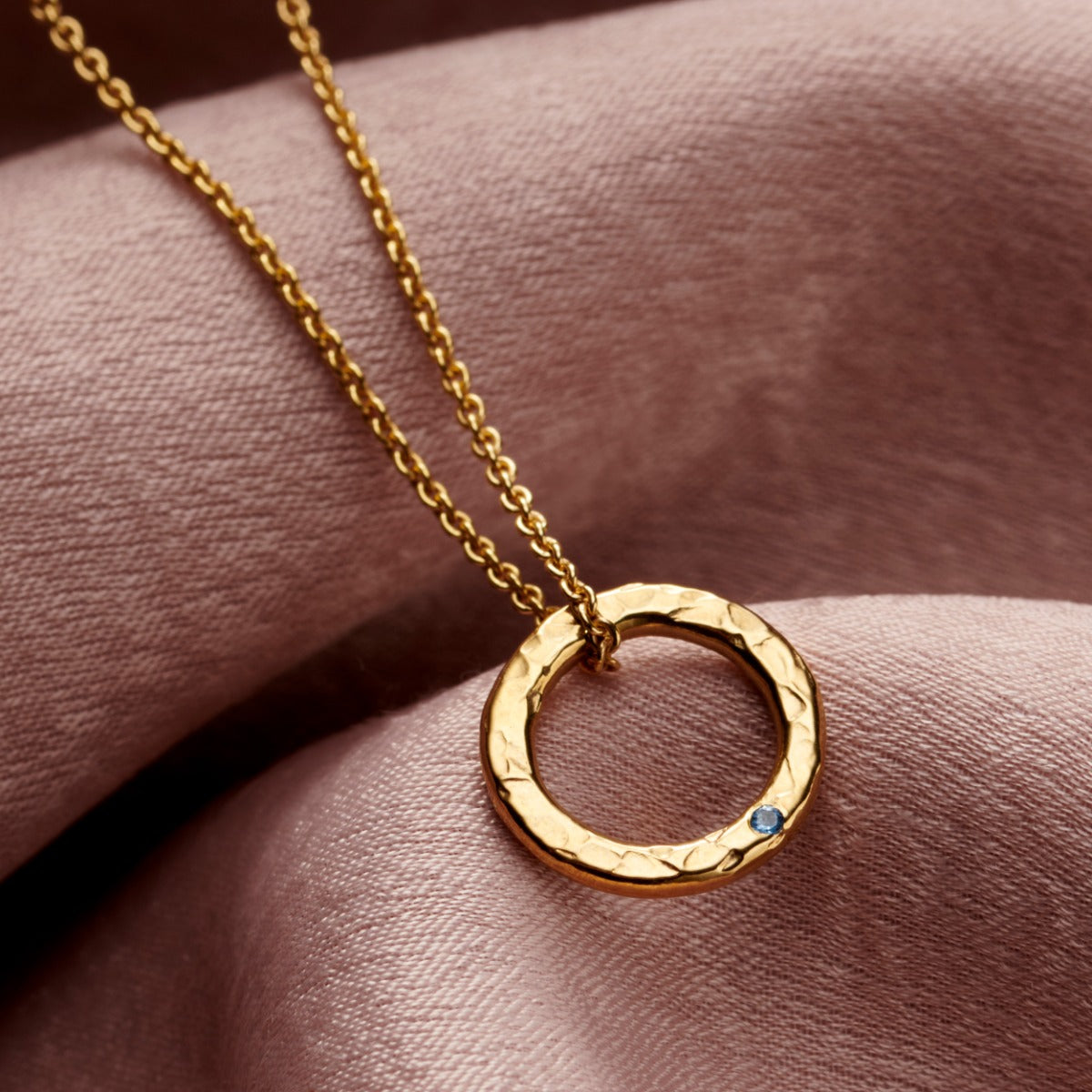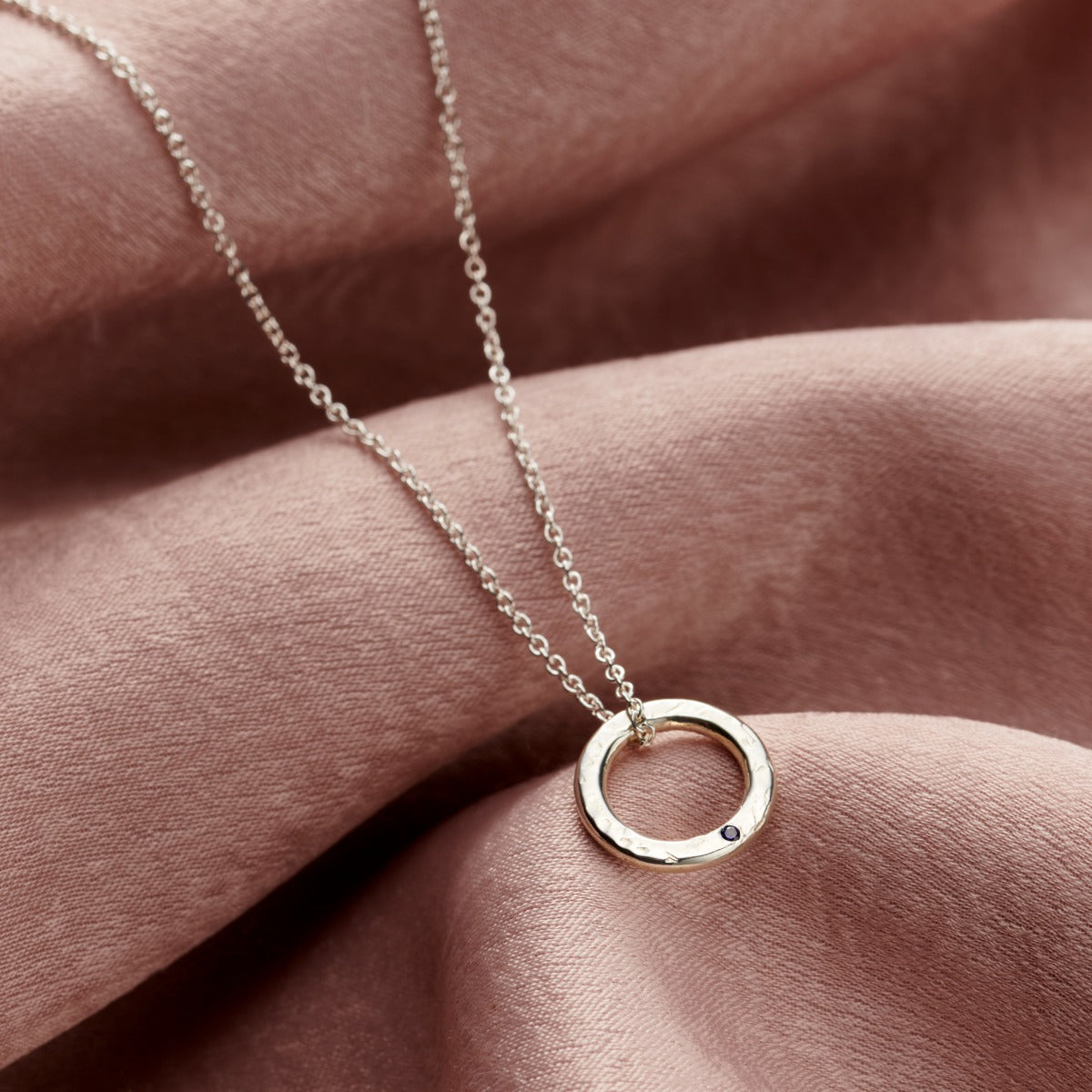 This stunning take on our popular mini message birthstone necklace, brings a hand-textured finish complete with beautiful ethically sourced birthstones. Each birthstone necklace is handmade by our expert jew...