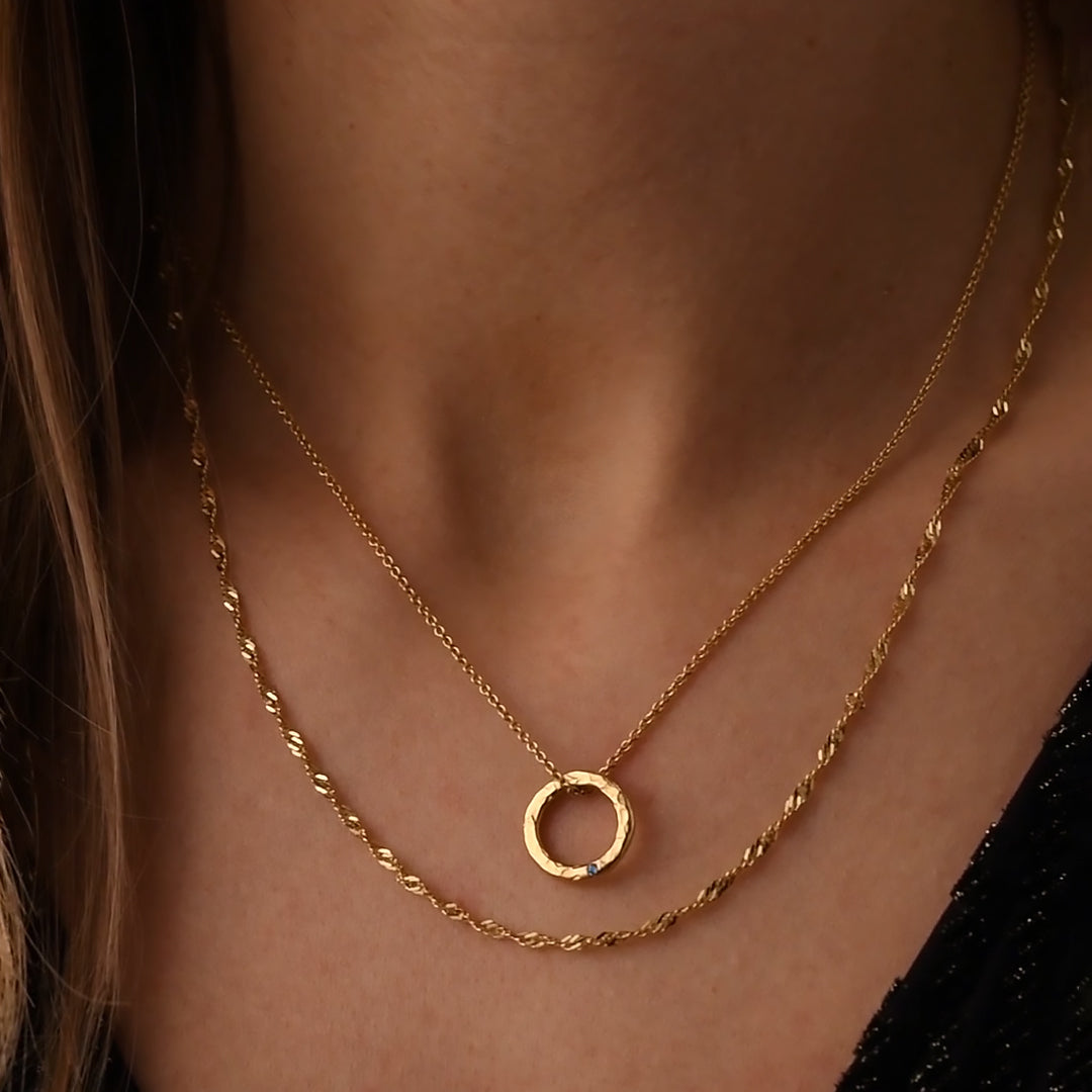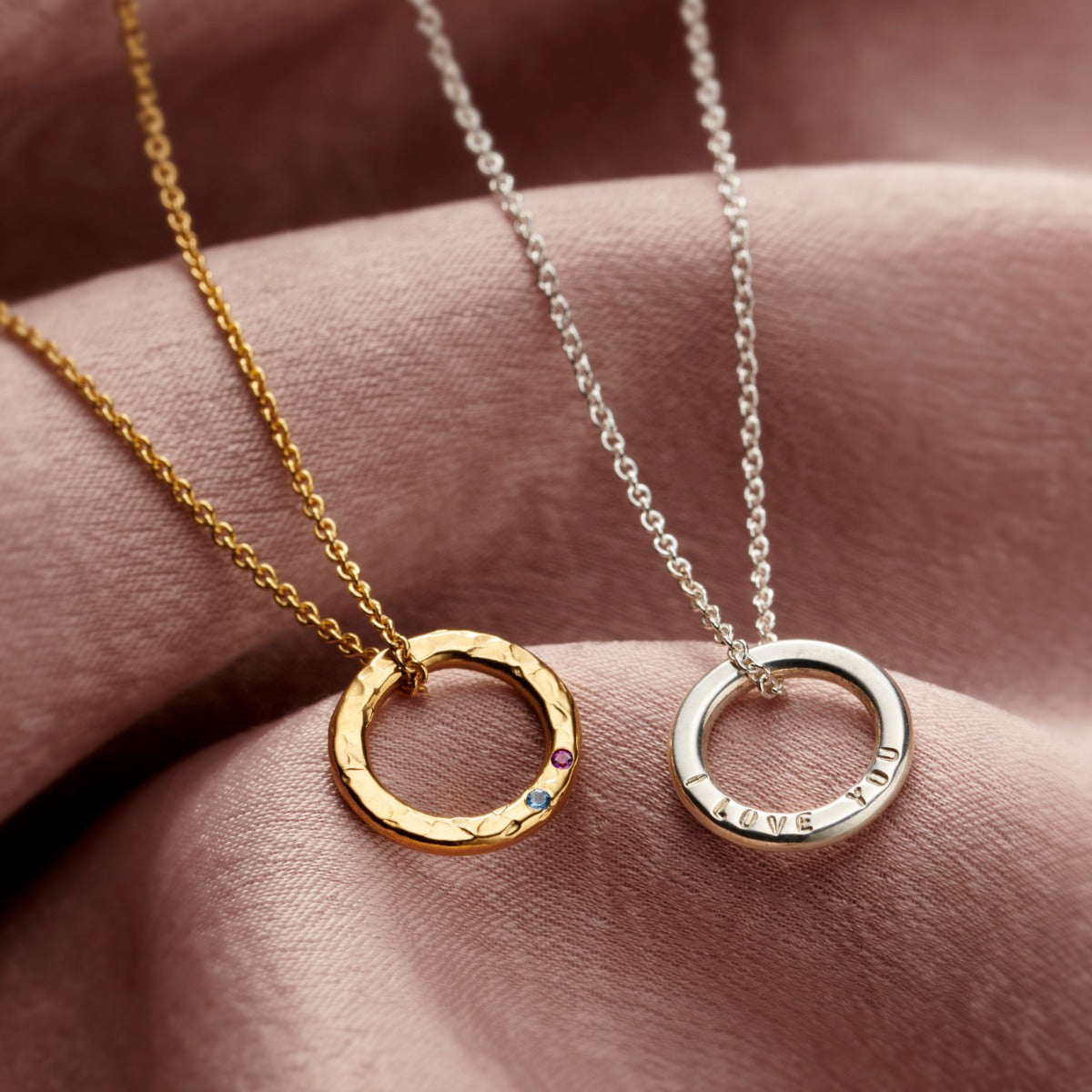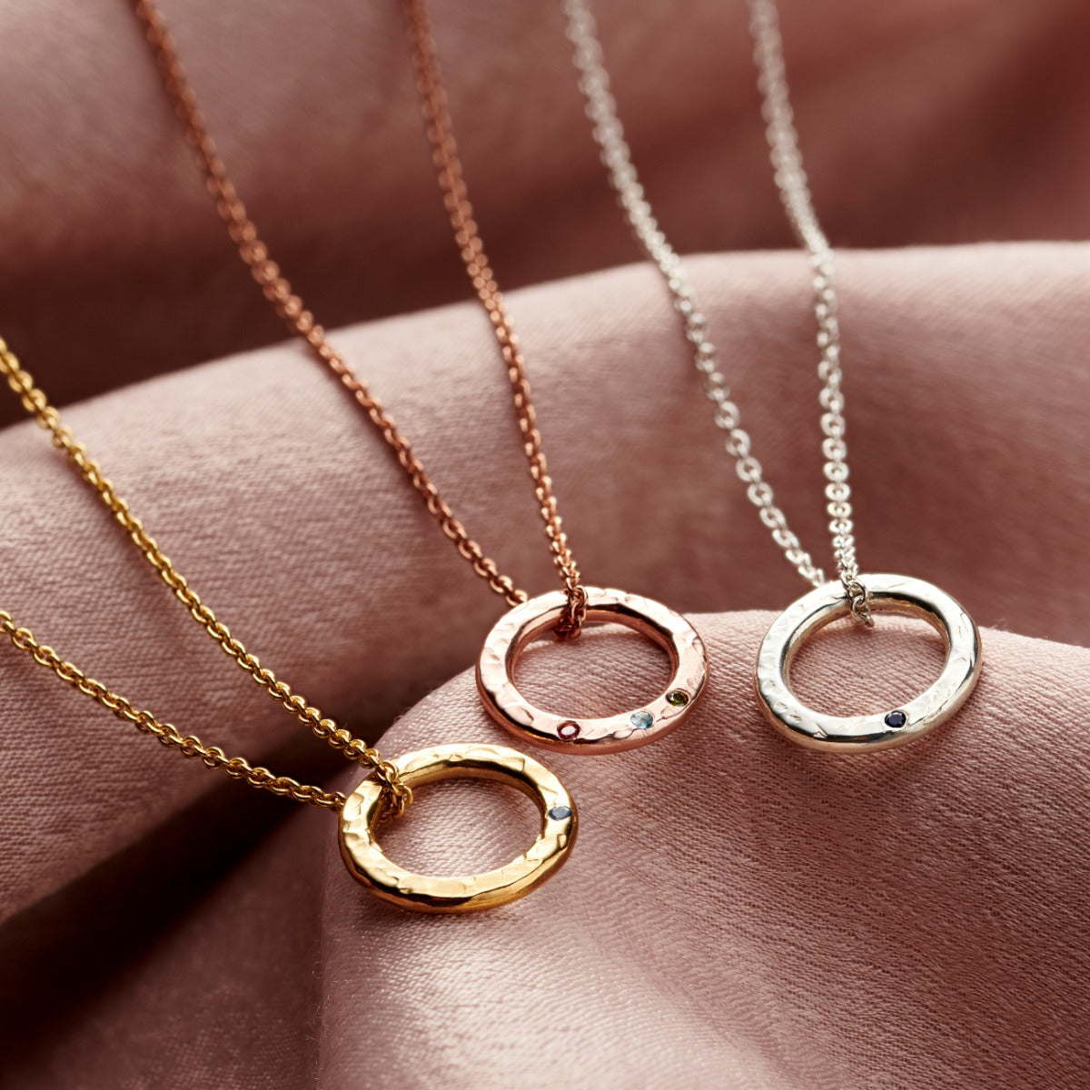 This stunning take on our popular mini message birthstone necklace, brings a hand-textured finish complete with beautiful ethically sourced birthstones. Each birthstone necklace is handmade by our expert jew...