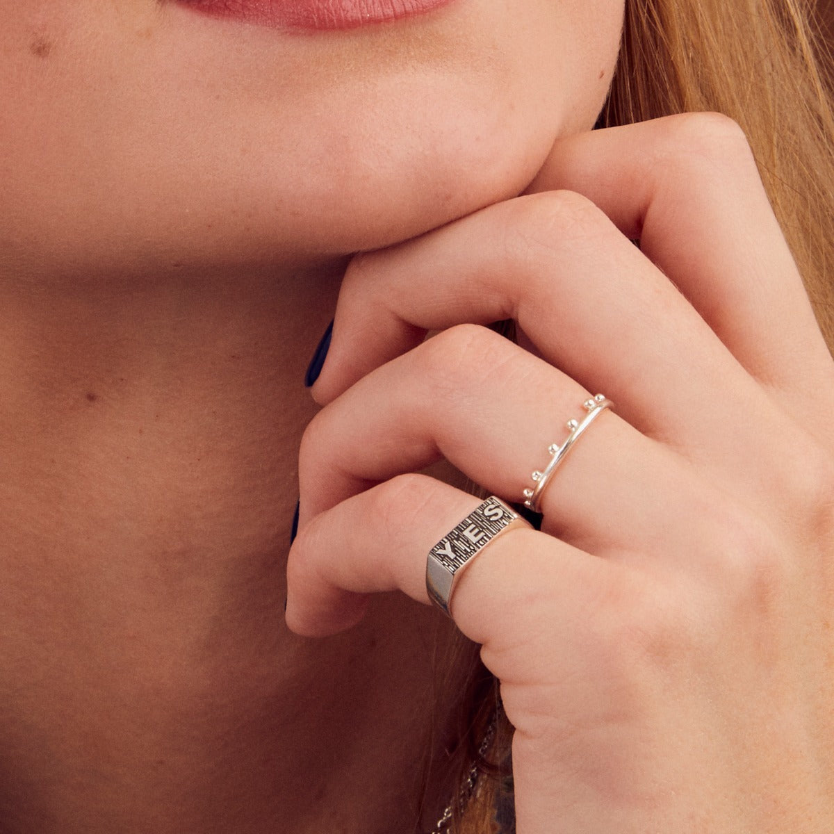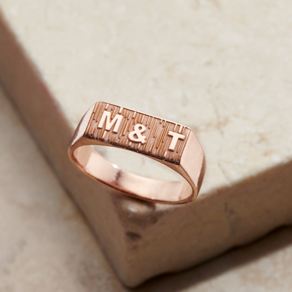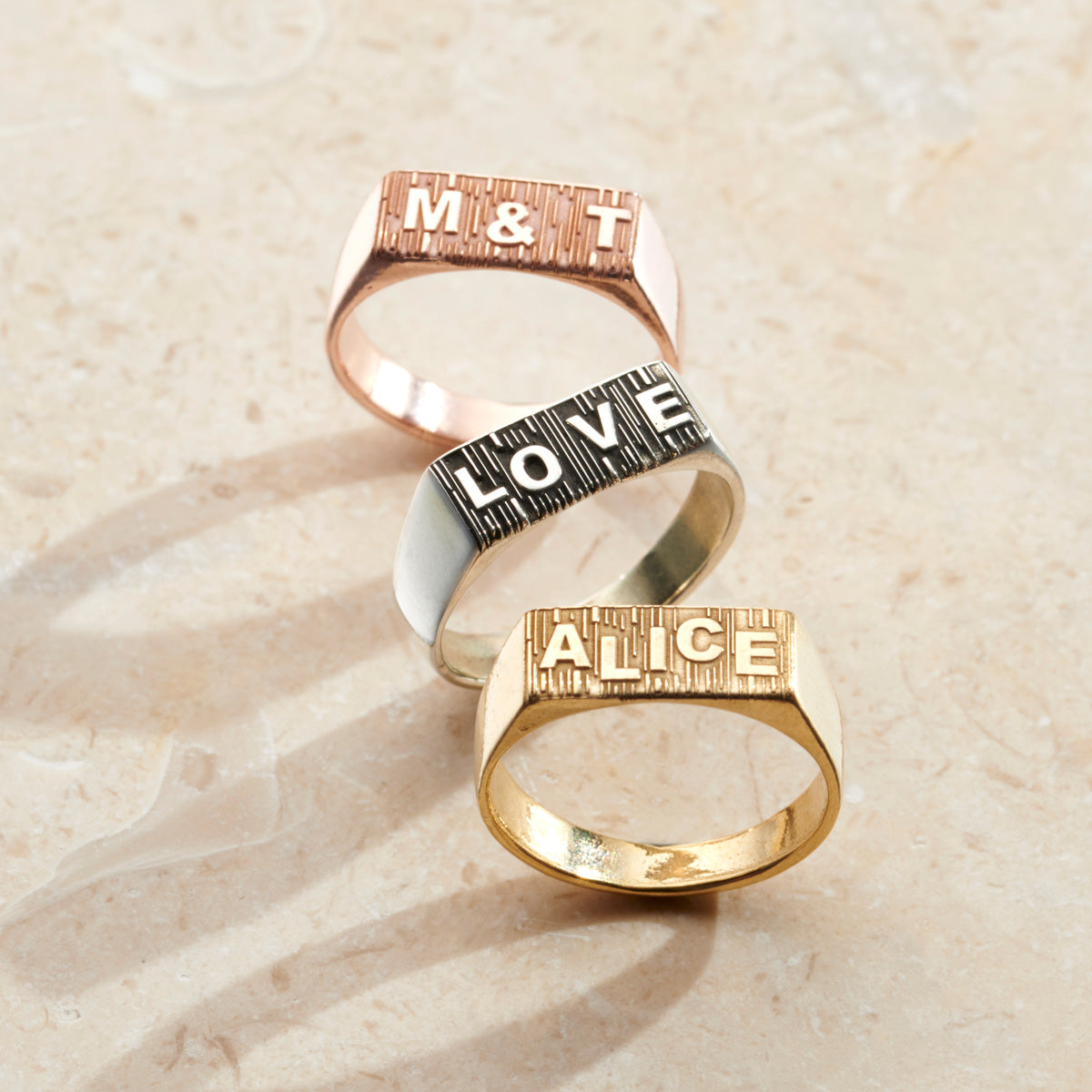 A truly unique personalised signet ring, made from solid sterling silver in our Brighton workshop. Inspired by a ring Alice wears that her mum was gifted on her 21st birthday in the 70's.
