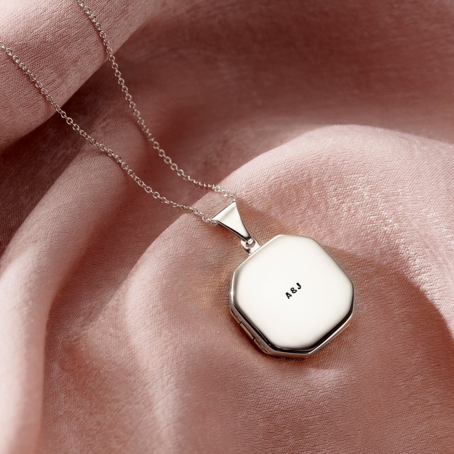 The beautiful Personalised Large Faceted Square Locket Necklace is handmade and hand-stamped in our Brighton workshop. The necklace features a stunning sterling silver square locket with faceted corners and ...