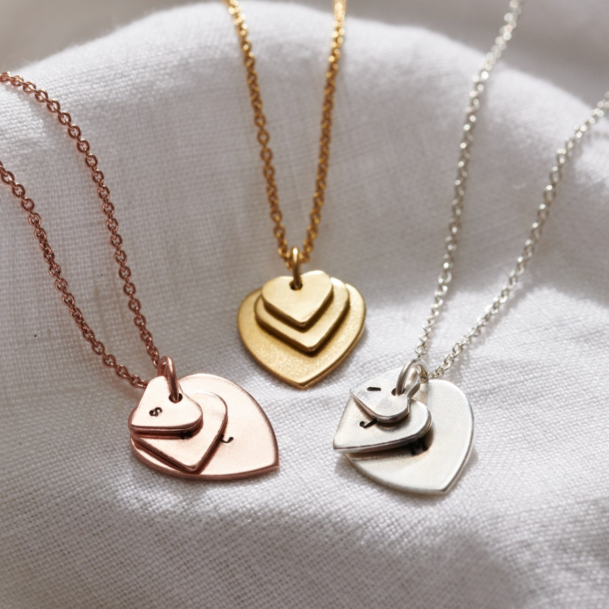 This gorgeous family necklace is the perfect personalised gift for mum. Made from Sterling Silver, this pendant necklace features three heart charms each personalised with your chosen letters or initials. Th...