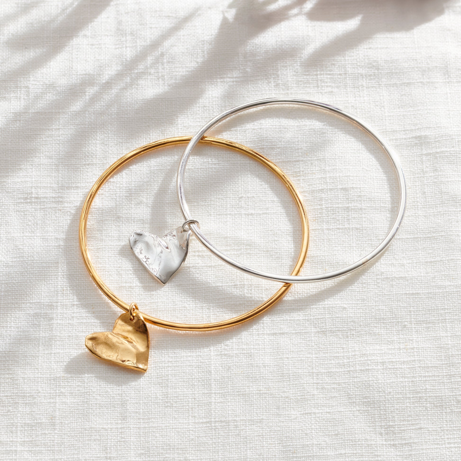 Handcrafted with care, the Personalised Fortune Heart Charm Bangle brings a touch of elegance to your look. Made from sterling silver with an optional 18ct gold plating, this exquisite ...