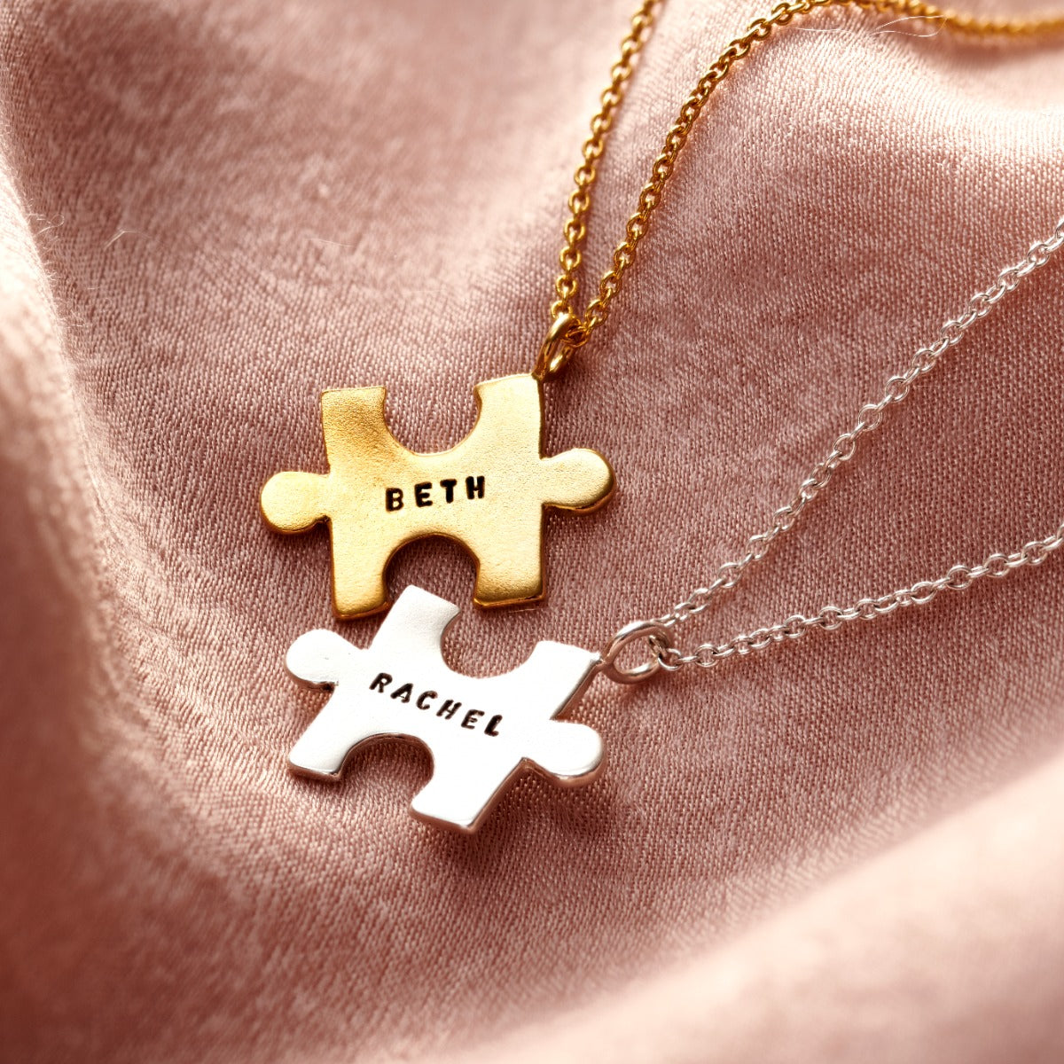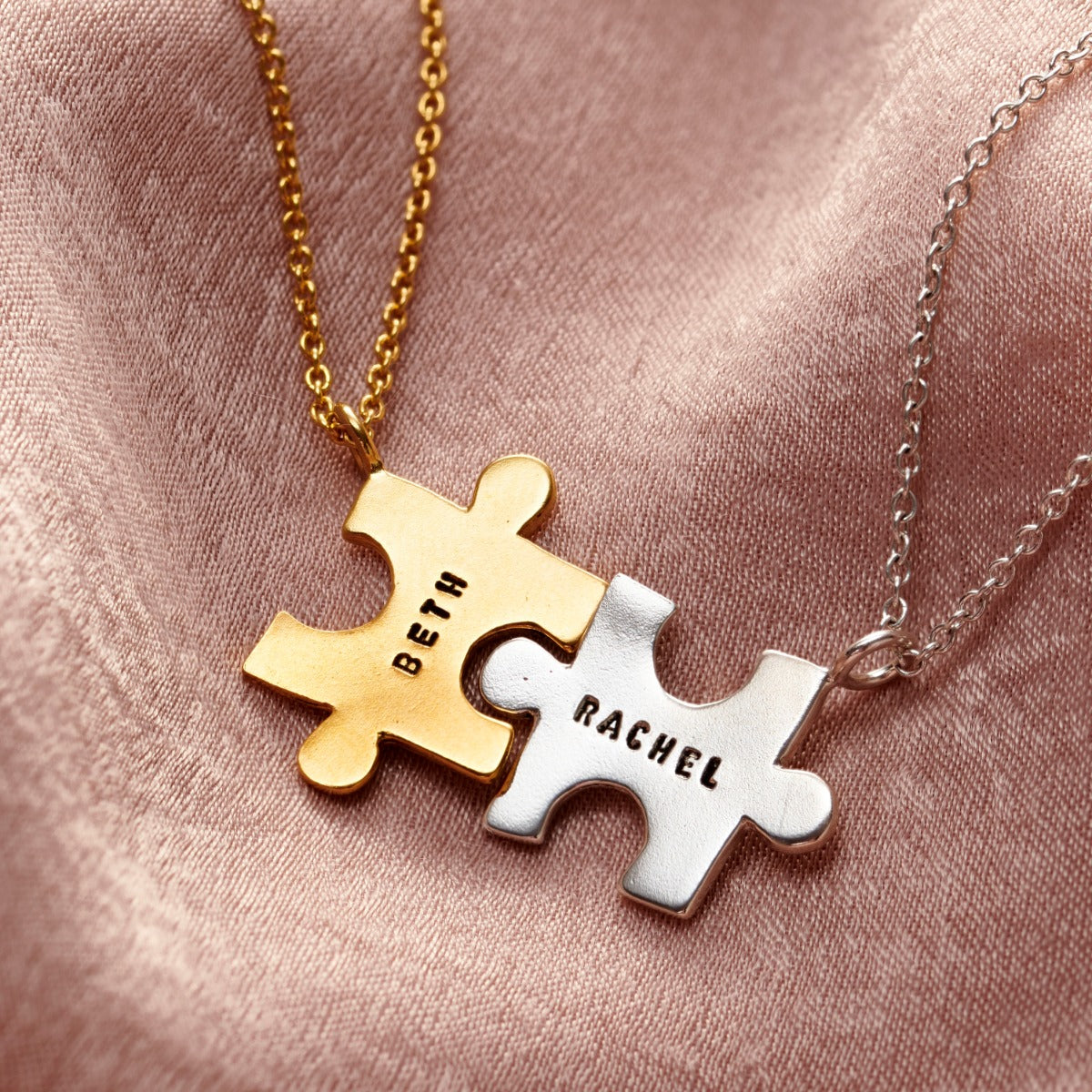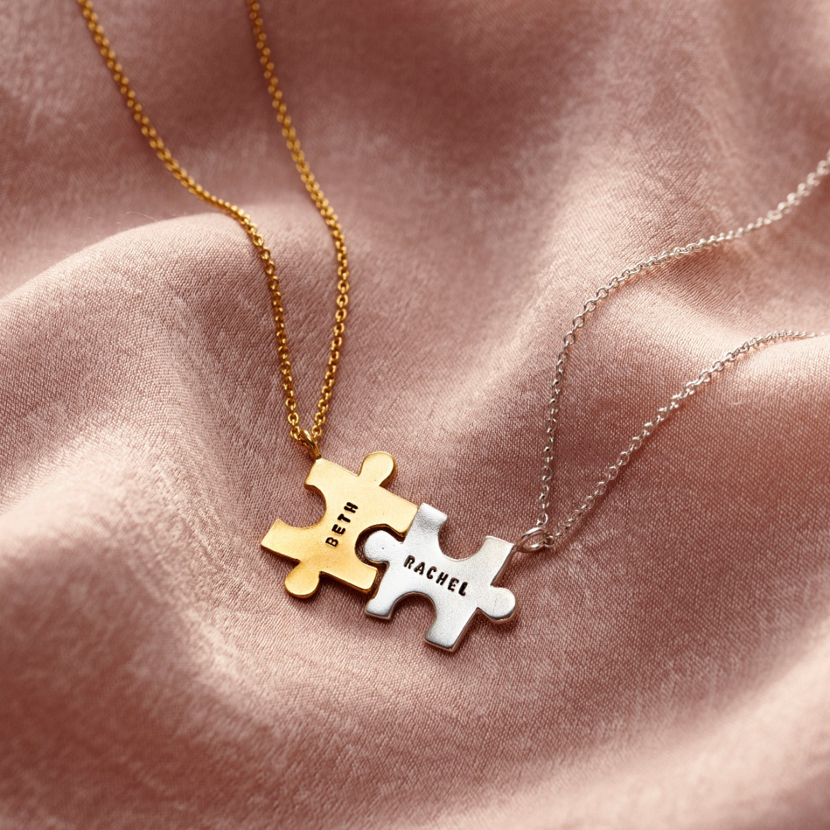 This gorgeous personalised necklace set is made in our Brighton workshop by our expert jewellers. Crafted from sterling silver, each necklace features a jigsaw puzzle piece charm which can be personalised wi...