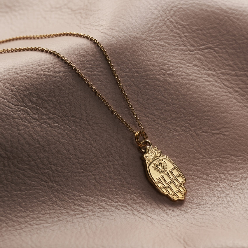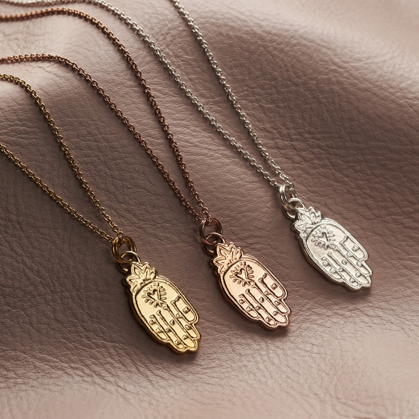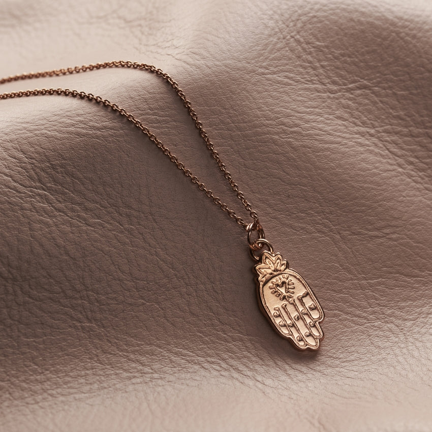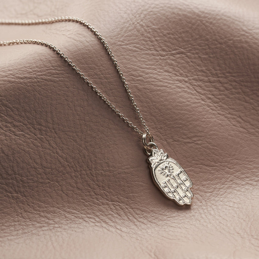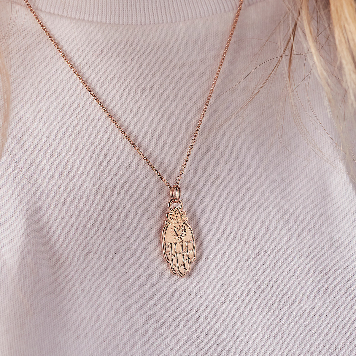 The beautiful Personalised Hamsa Hand Necklace features a dainty hand engraved Hamsa Hand motif pendant suspended from a trace chain. Handcrafted from sterling silver with optional 18ct gold plating, this st...
