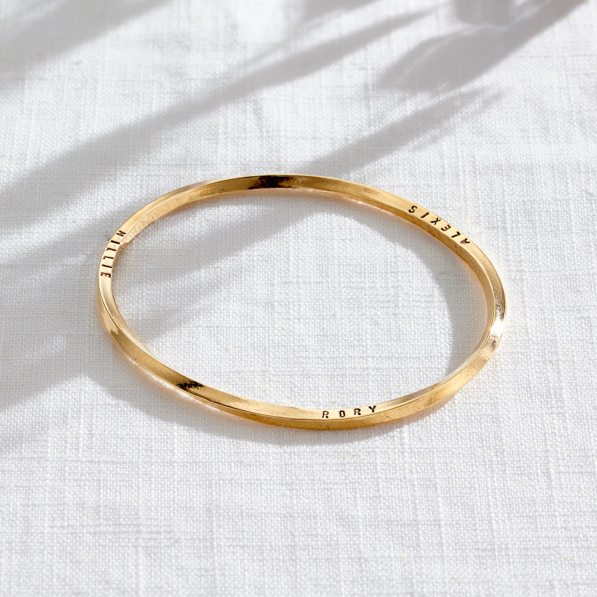 Made from beautiful sterling silver by our jewellers here in Brighton, this unique bangle features a unique twisted design symbolising you're forever. This silver bangle can be personalised with up to three ...