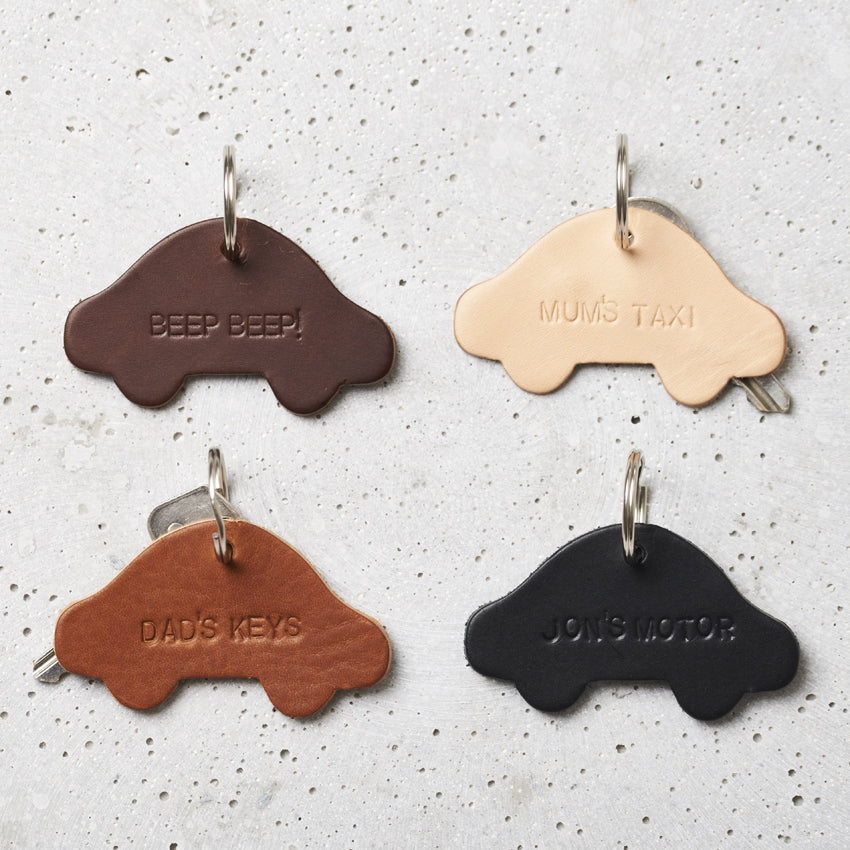 A beautifully handmade genuine leather keyring which can be personalised with your own unique message. The Personalised Leather New Car Keyring makes a wonderful gift for someone who's just passed their driv...