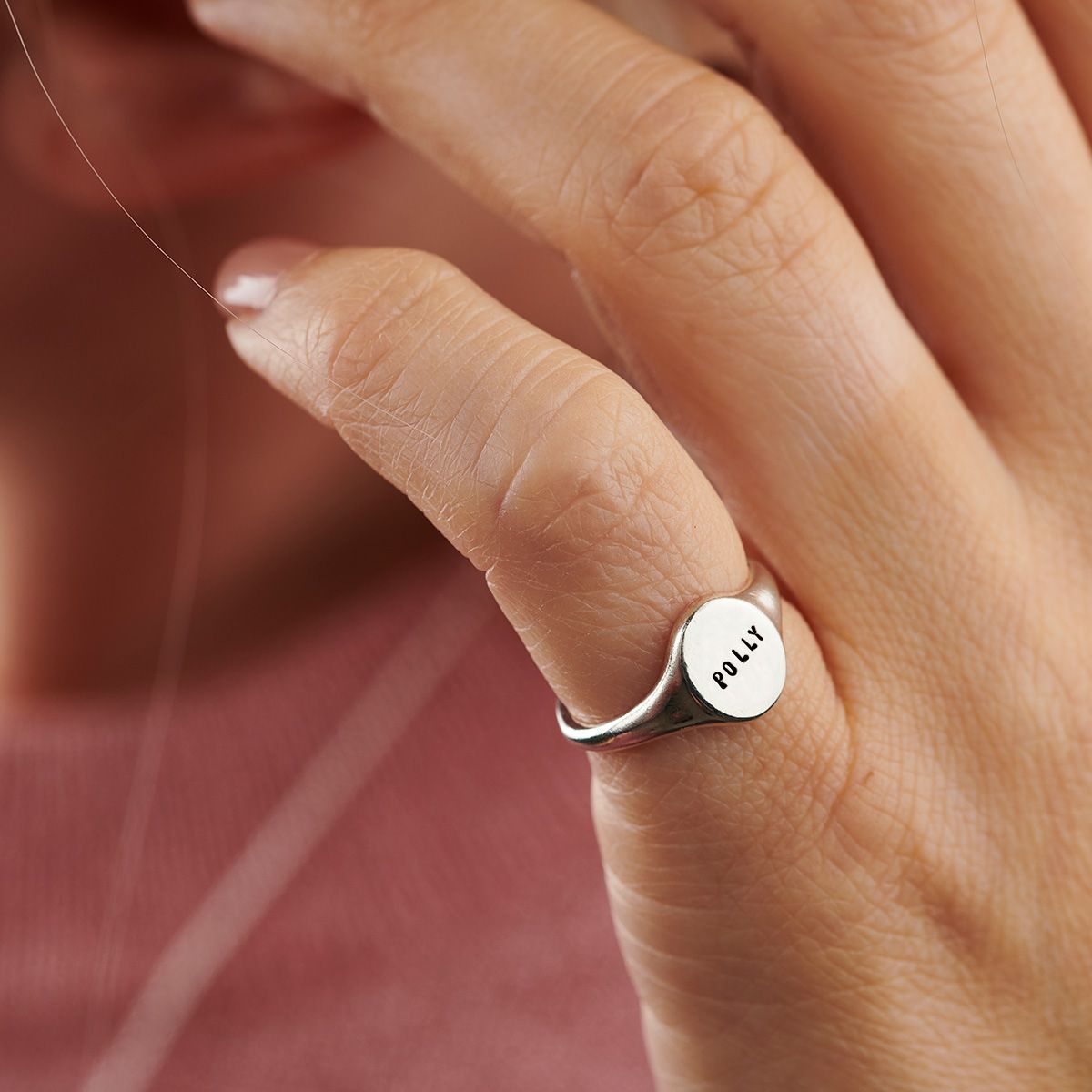 This beautiful name signet ring is made from solid Sterling Silver. Personalised with a short name or word by our expert jewellers, using our unique hand-stamping method. Each personalised signet ring can be...
