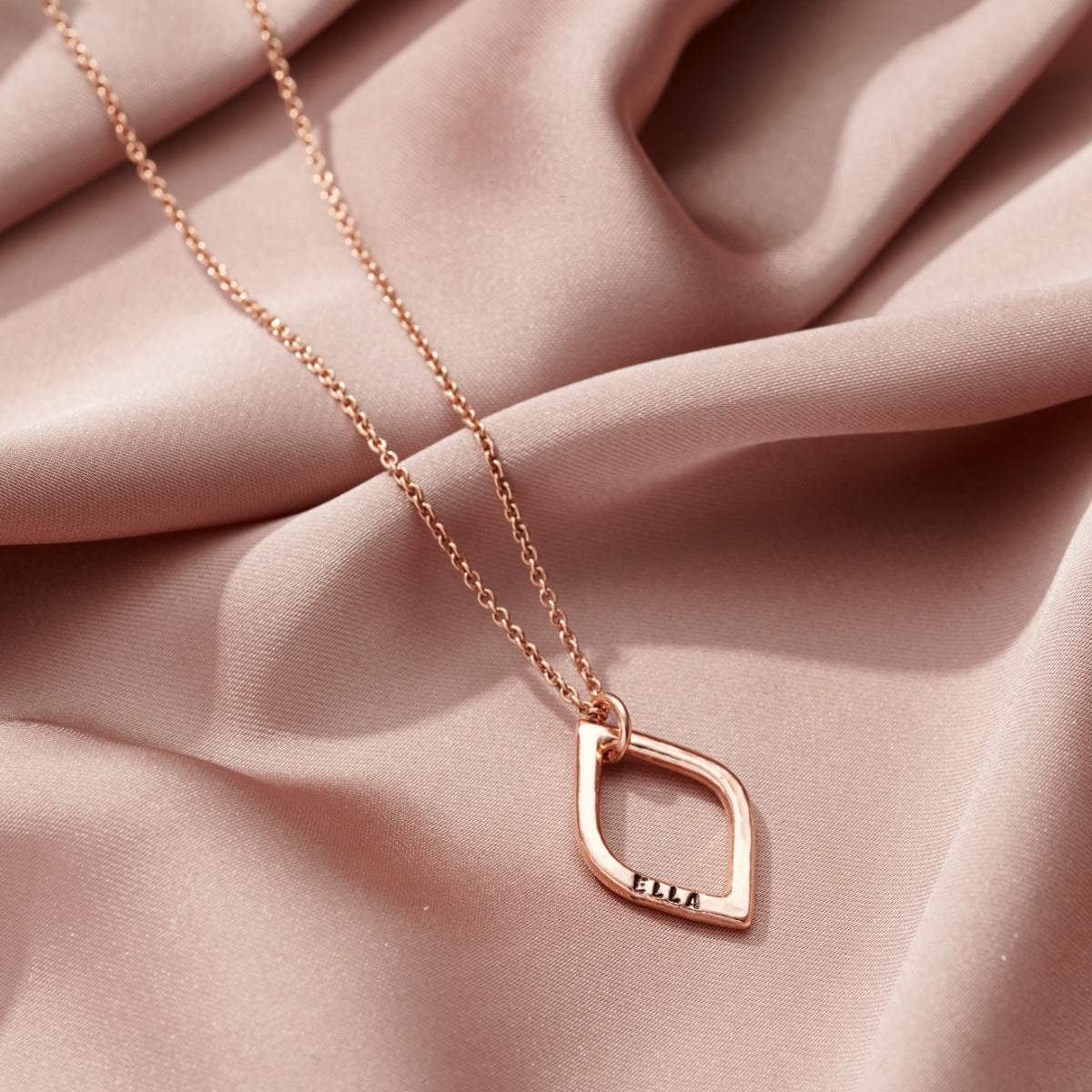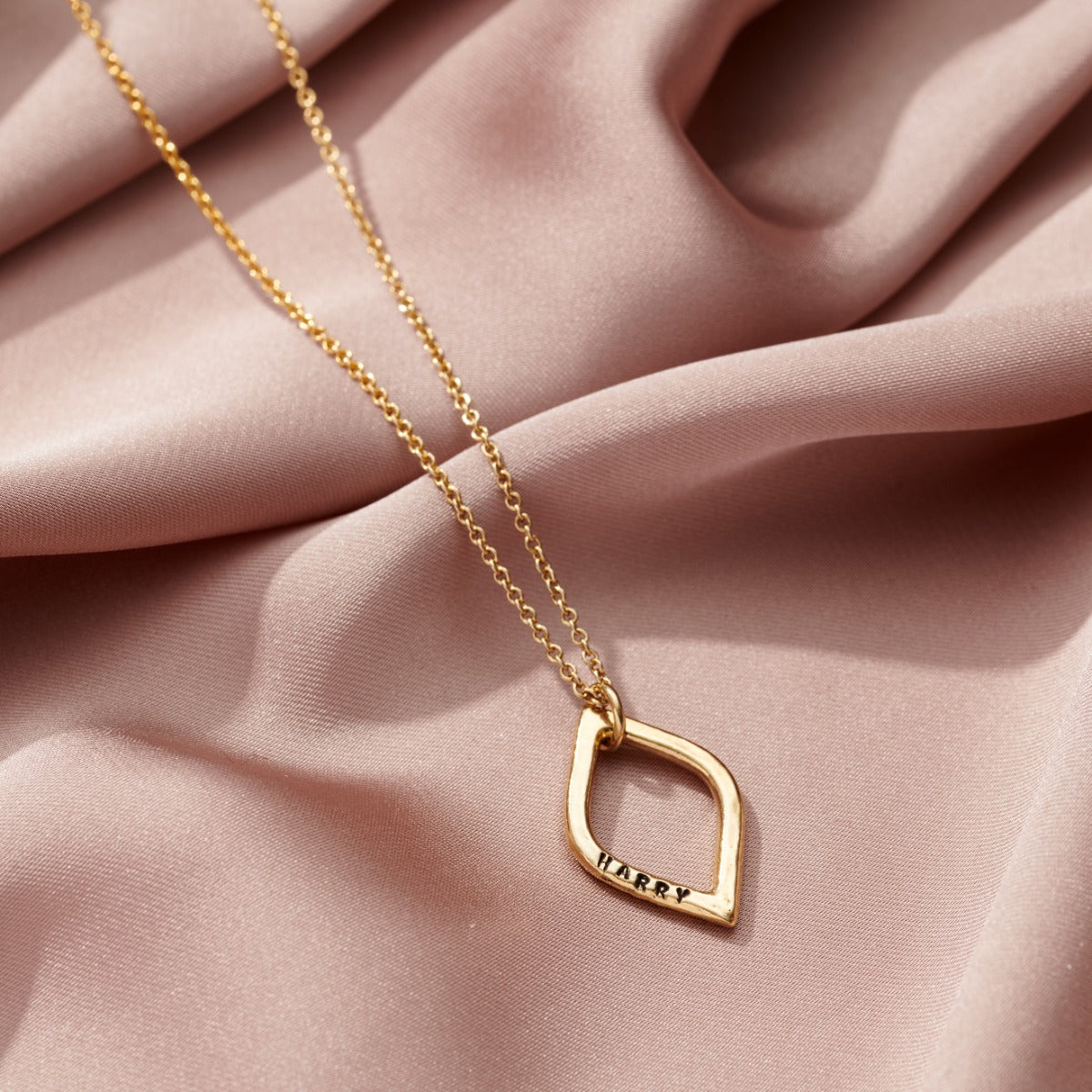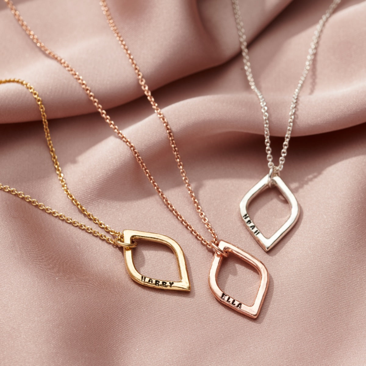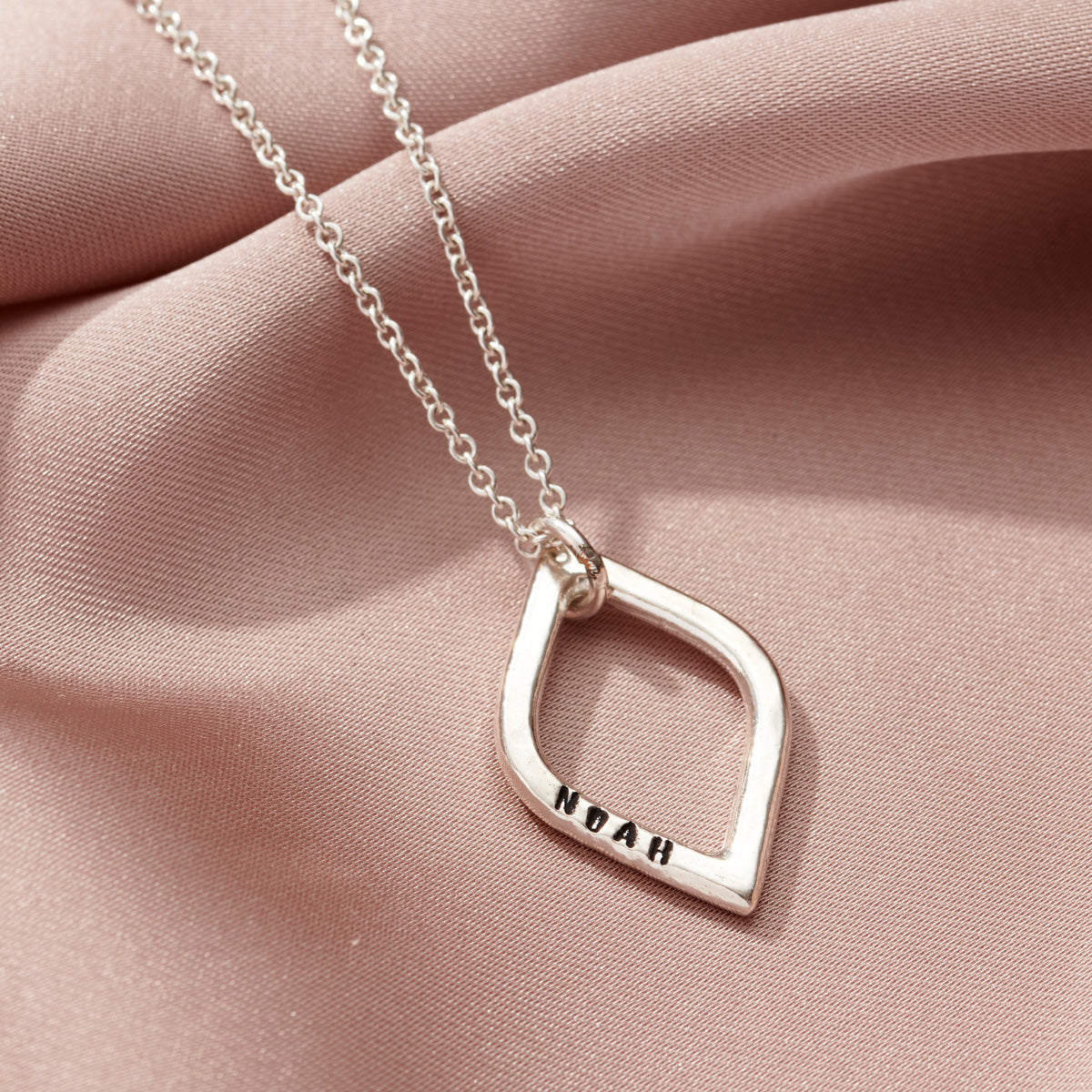 A beautiful and timeless personalised sterling silver necklace, made by our expert jewellers in our Brighton workshop. Each necklace features a open leaf pendant which can be personalised with a name, date o...