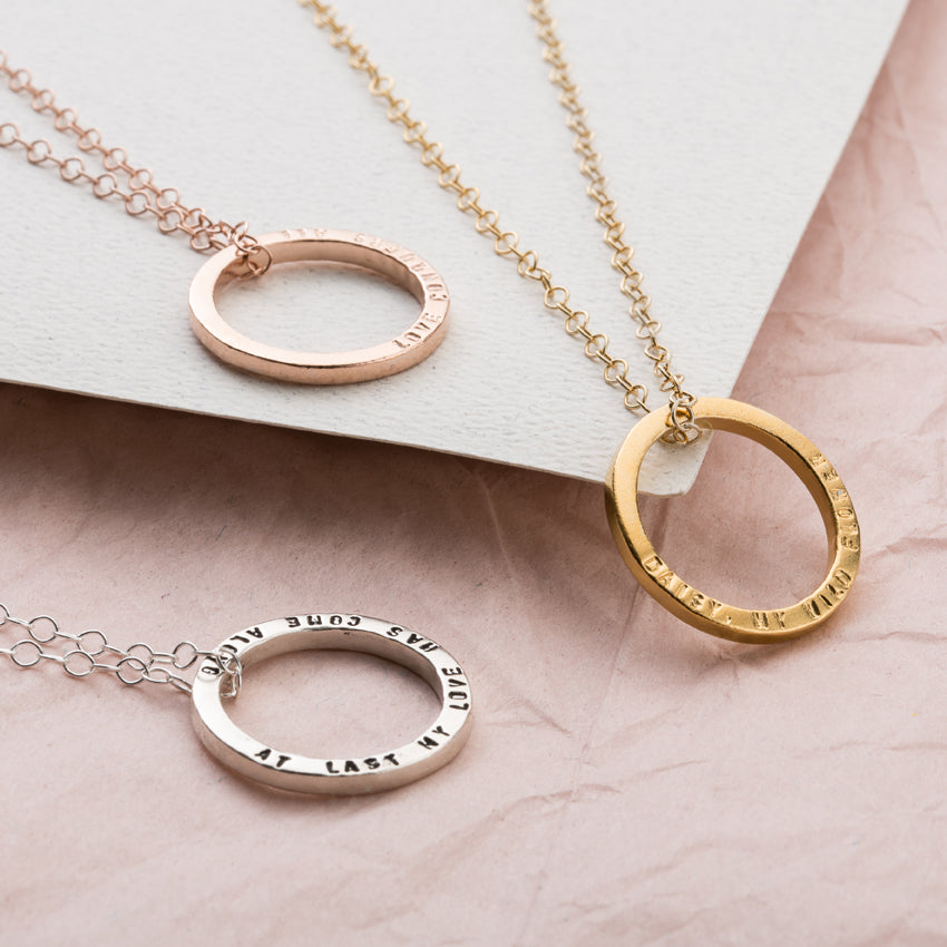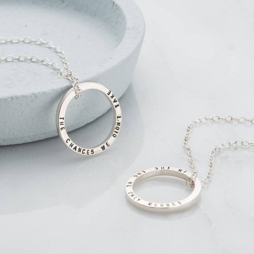 The beautiful Personalised Quote Circle Necklace has additional room for your own unique personalisation, perfect for a quote, song lyric, line of poetry or meaningful message. A touching gift for someone sp...