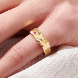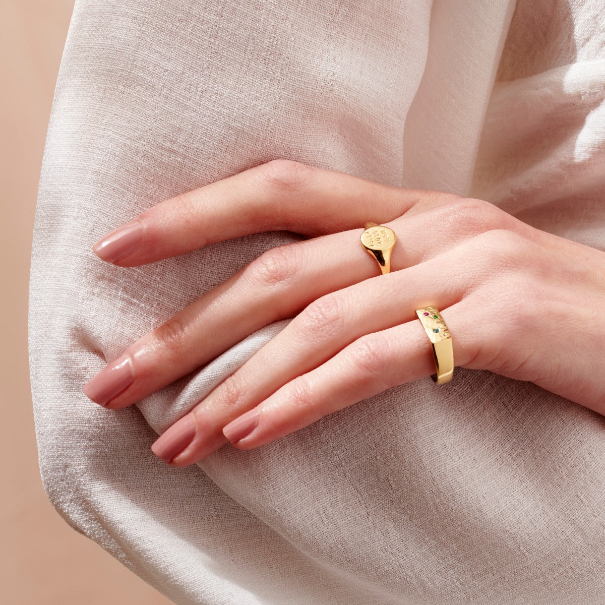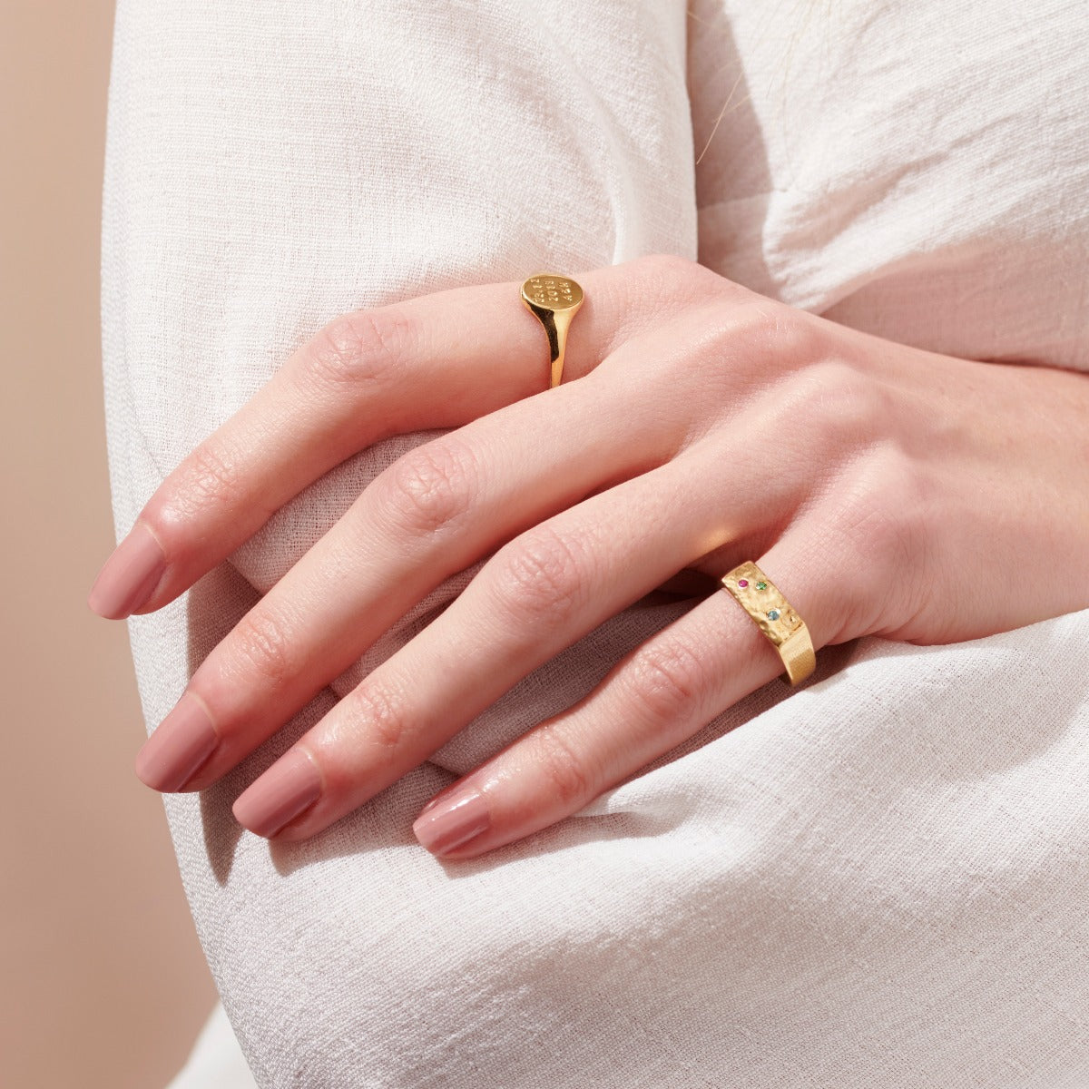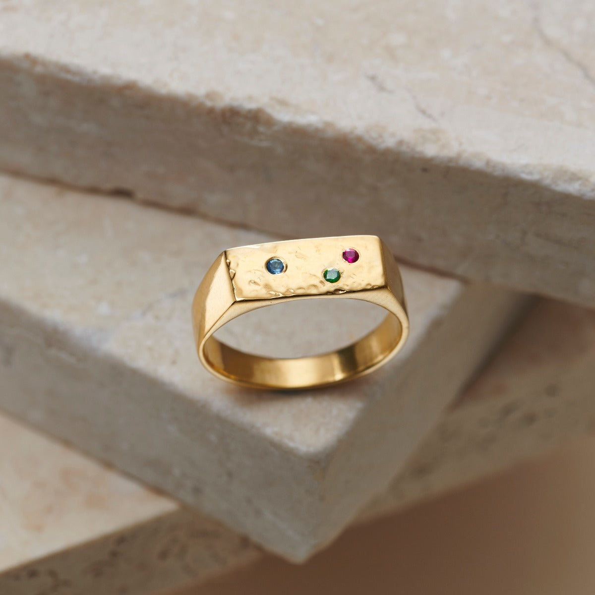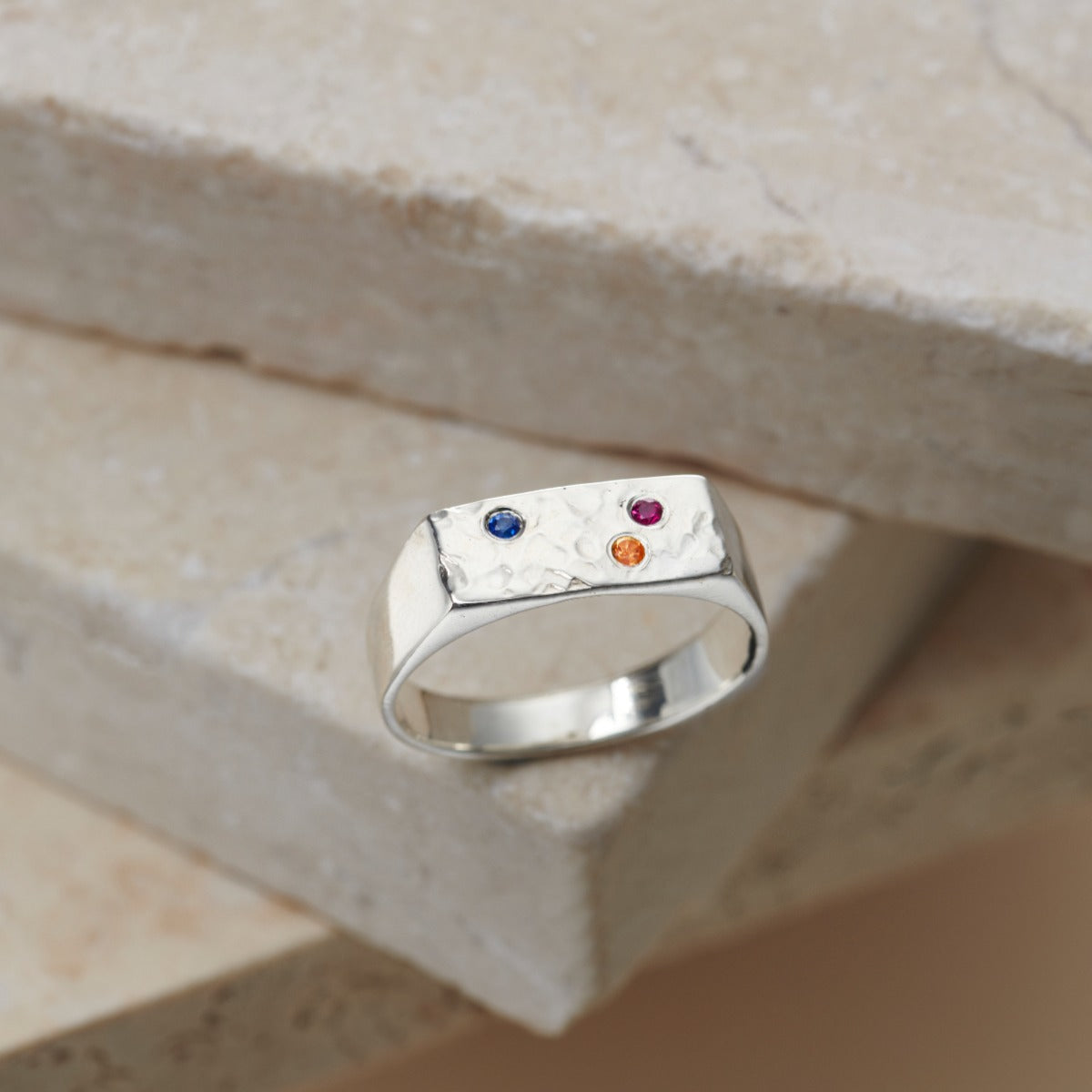 Personalised Rectangle Confetti Birthstone Signet Ring