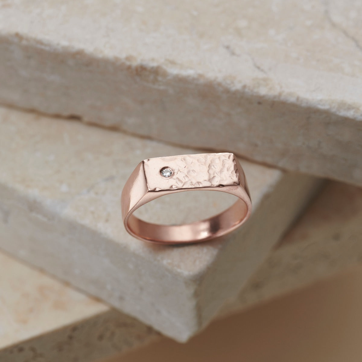 Our jewellers stunning take on a classic signet ring. Handmade from sterling silver in our Brighton workshop with optional 18ct gold plating available. Each personalised signet ring face is finished with a b...