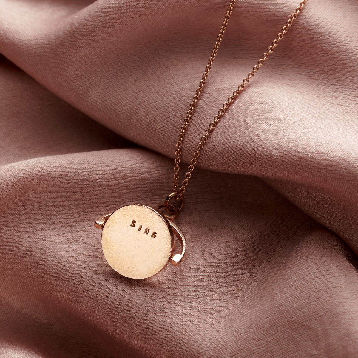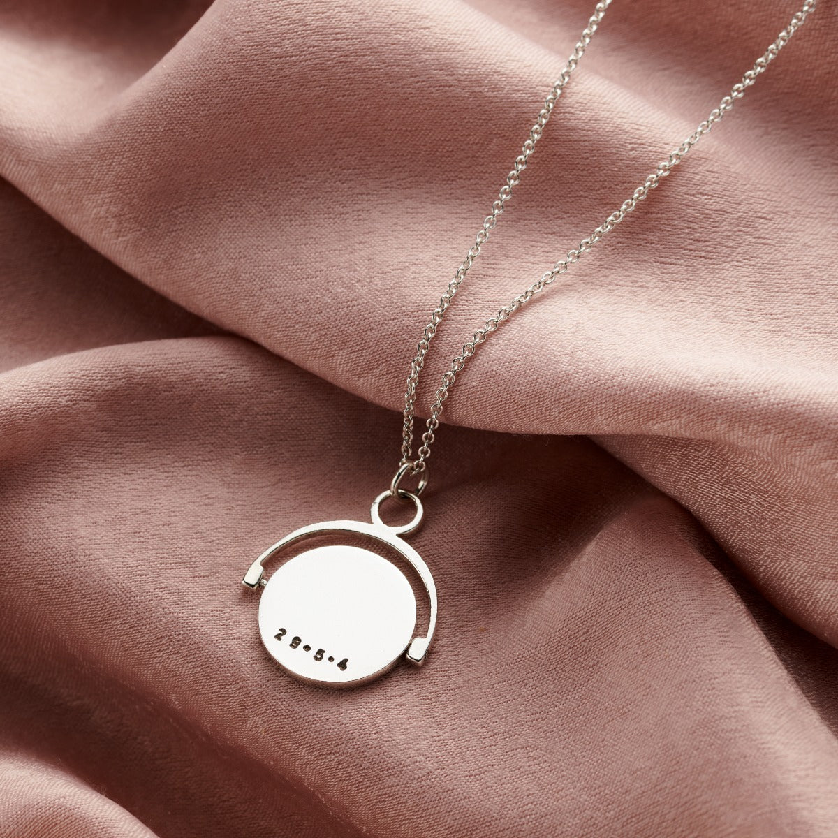 The Personalised Spinning Necklace is a larger version of our bestselling Personalised Mini Spinning Necklace, with extra room for your own unique personalisation. Both sides of the pendant can be personalis...