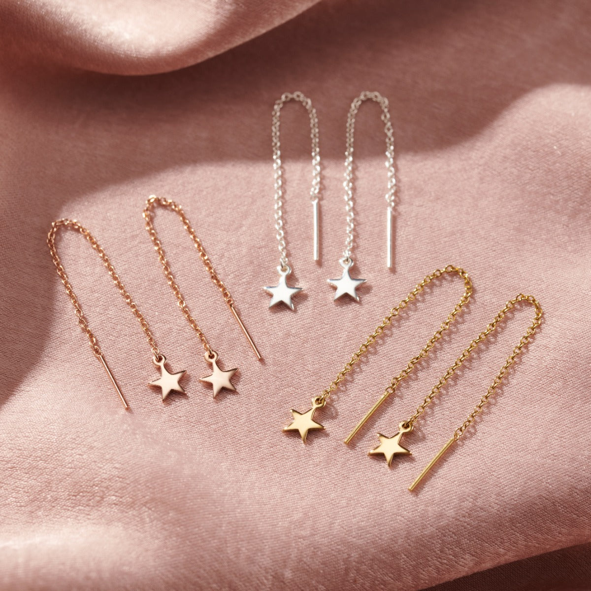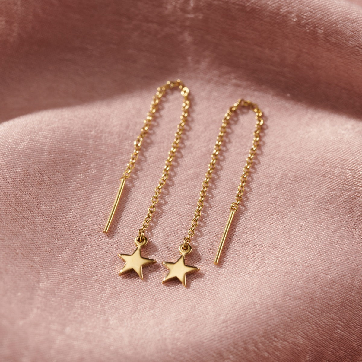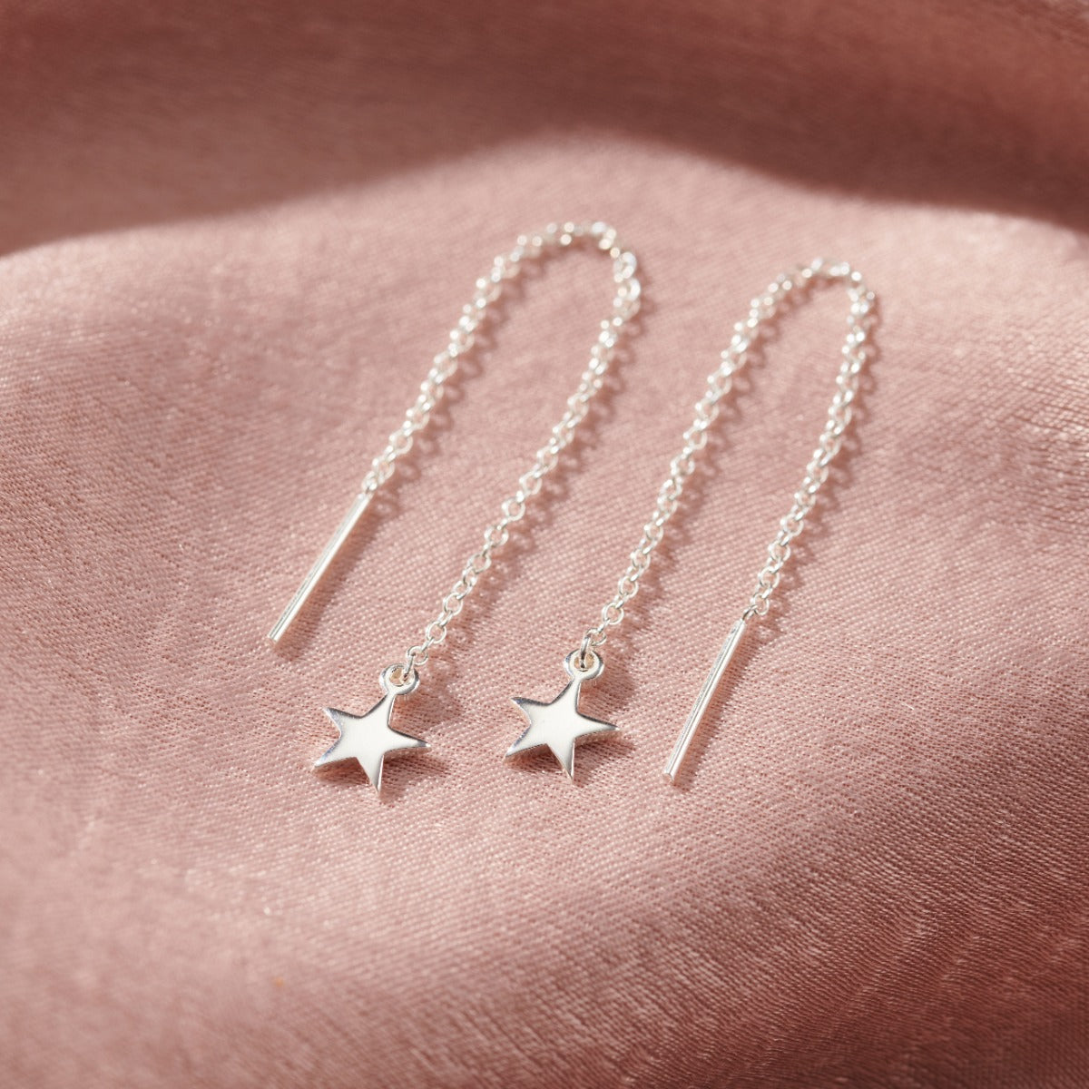 These gorgeous pull-through earrings are made from Sterling Silver in our Brighton workshop. Featuring a beautiful chain finished with a dainty star charm and a short bar. These earrings are worn threaded th...