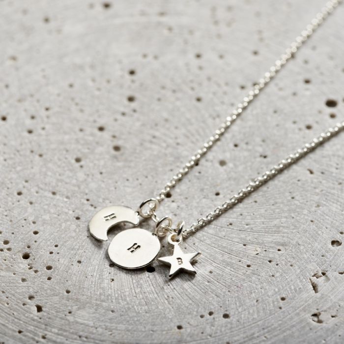 Symbolising strength, wisdom and eternity, the beautiful Personalised Sun Moon & Star Necklace is handcrafted from Sterling silver. Let the heavens guide your way with this celestial design, featuring a ...