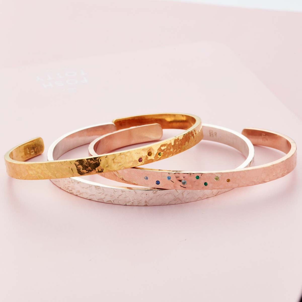 Personalised Textured Confetti Birthstone Cuff Bangle
