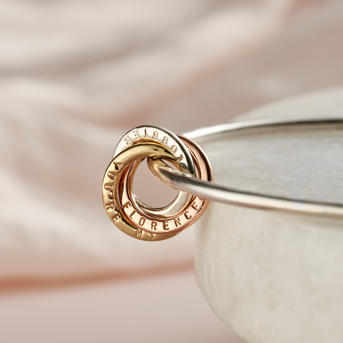 Personalised 9ct Mixed Gold & Silver Russian Ring Bangle