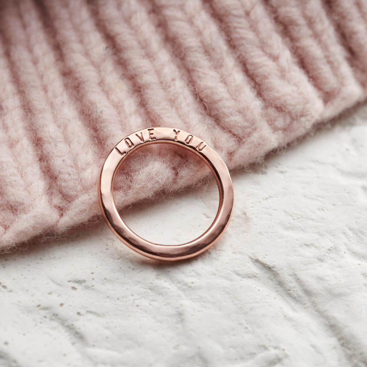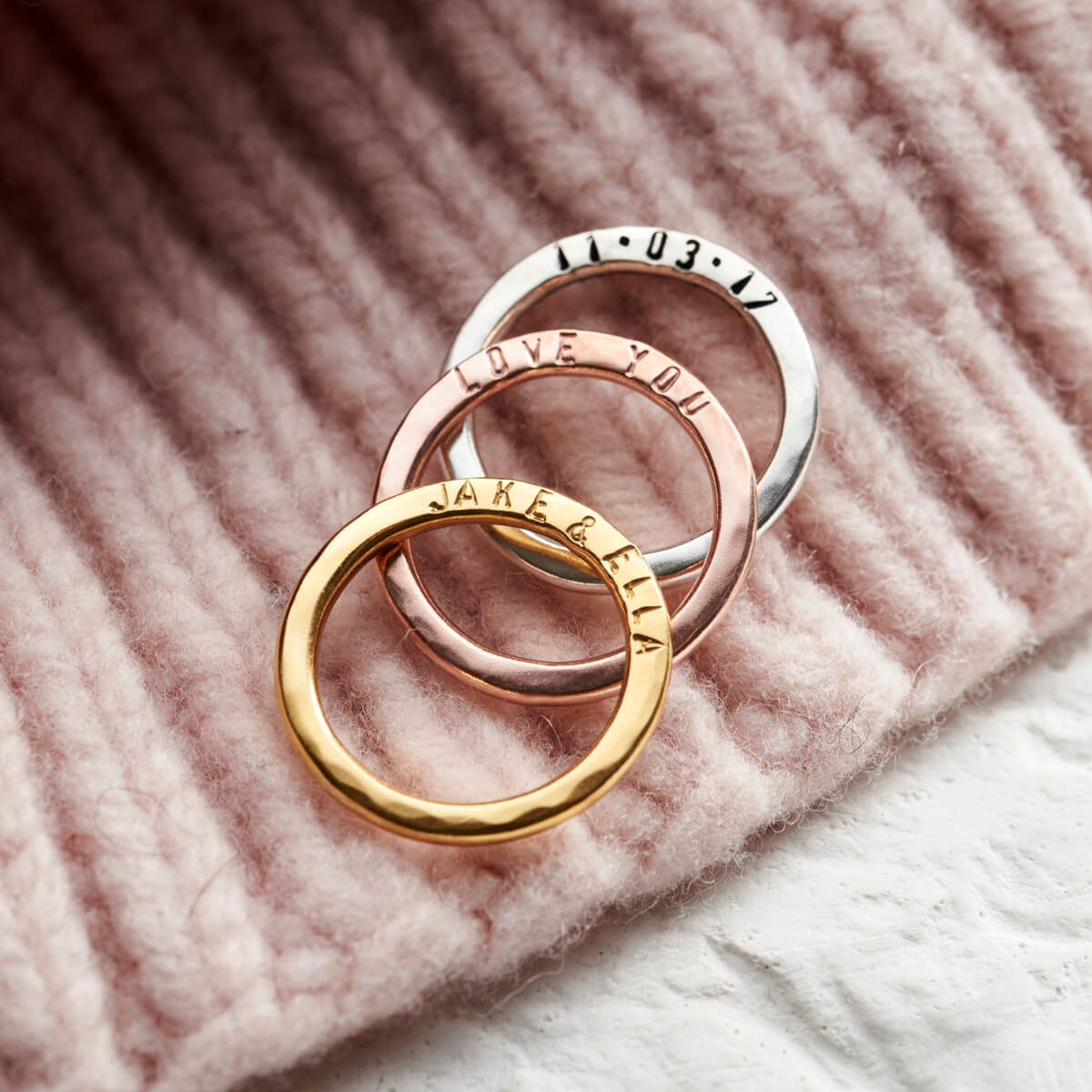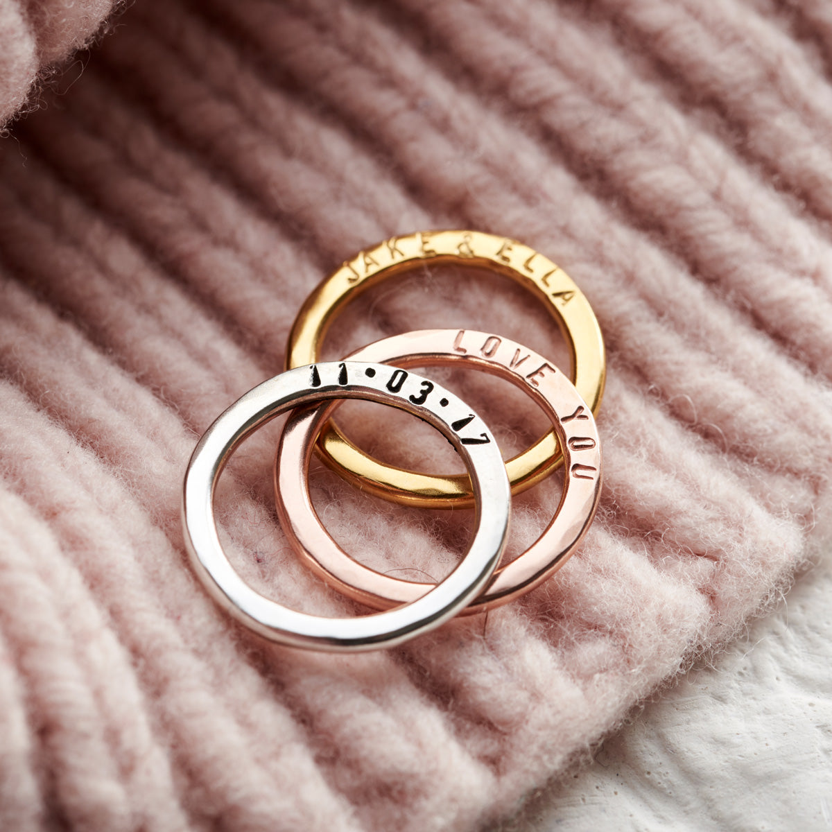 The beautifully simple Personalised Verse Stacker Ring can be personalised with your own unique words, making it a wonderful gift for someone special. Your personalisation is hand-stamped onto the side of th...