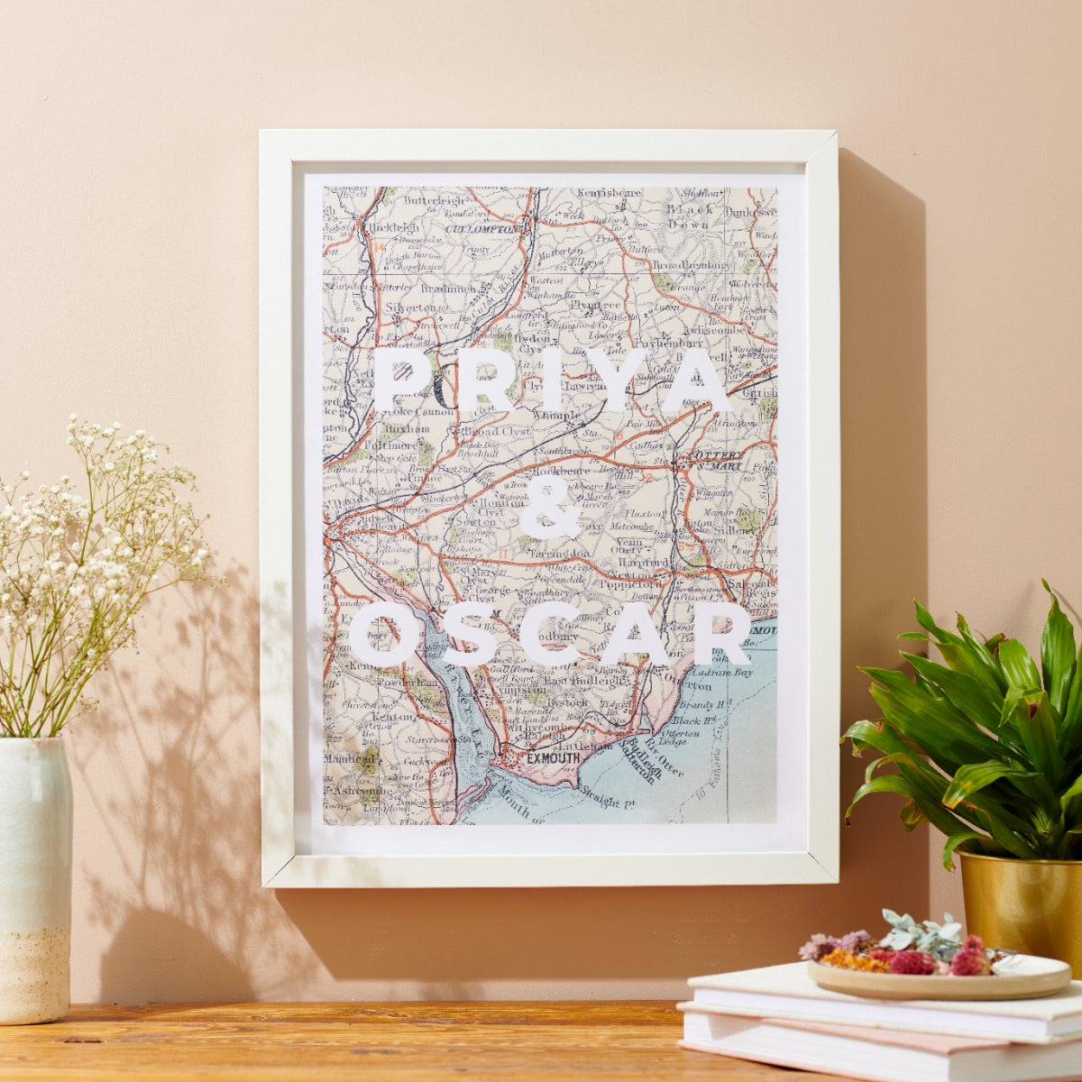 Unique personalised print with your chosen location printed in genuine vintage map designs. Each print can be personalised with your words, across three lines. Perfect for names, dates and little messages to...