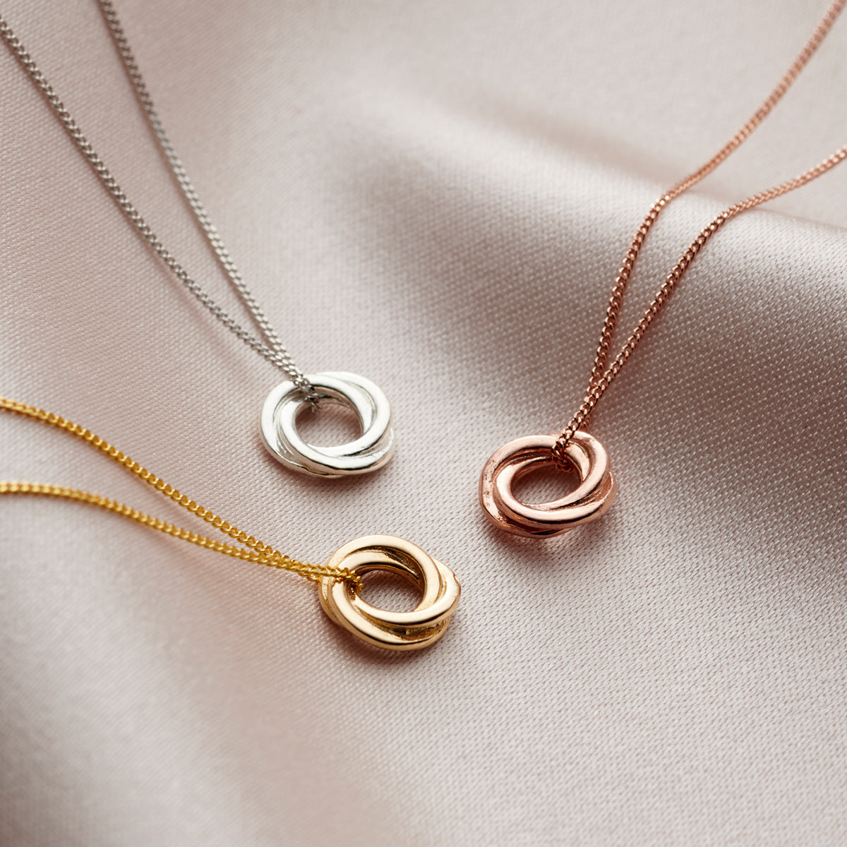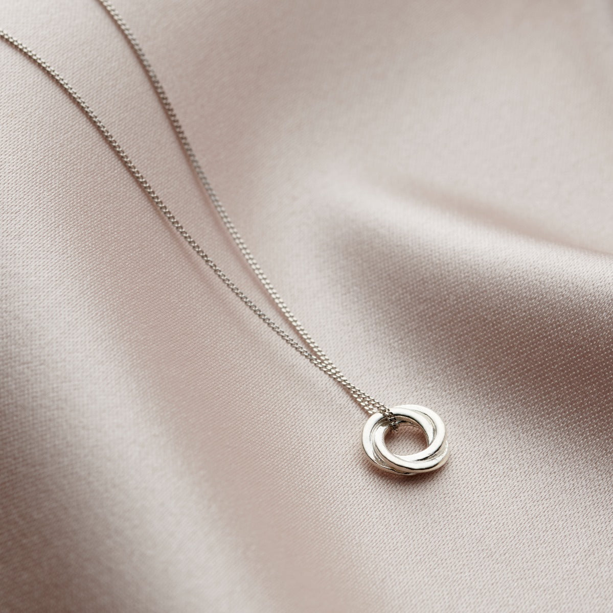 The beautiful Petite 18ct Gold Russian Ring Charm Necklace features three rings that intertwine to create a touching symbol of everlasting love. The miniature rings are soldered to stay in a fixed position. ...