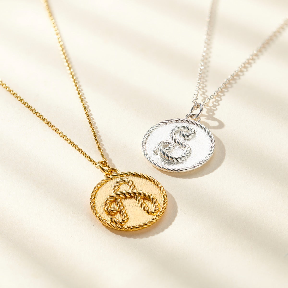 This gorgeous initial pendant necklace is the perfect gift for that special someone. Crafted from sterling silver the disc features your chosen initial in a unique rope design. If you prefer the luxe look of...