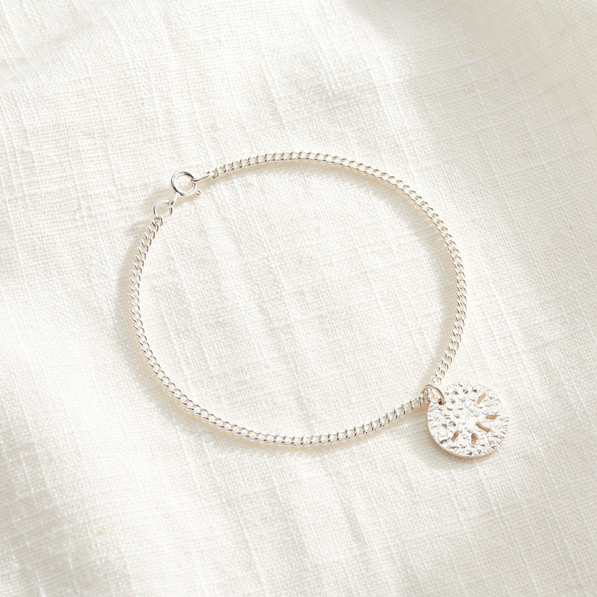 The stunning Sand Dollar Charm Bracelet is the newest edition to our bestselling Tidal Collection. Inspired by the shells found on the beaches of Mexico this wonderful Sterling Silver bracelet adds a l...
