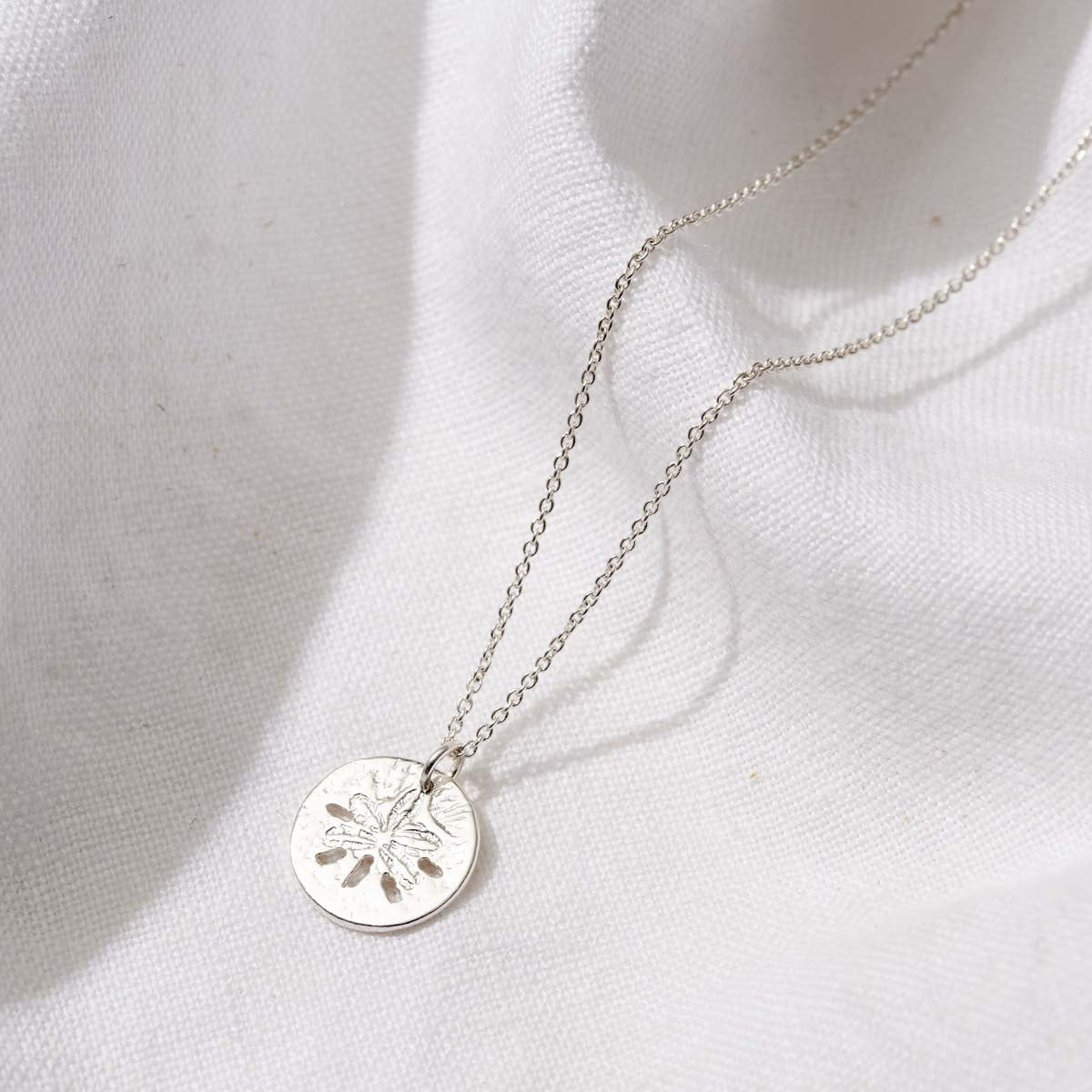 The Posh Totty Designs Sand Dollar Necklace features a Sterling silver handmade pendant. The Sand Dollar is pleasingly tactile and the surface texture has a pretty organic petal shape. The Sand Dollar Neckla...