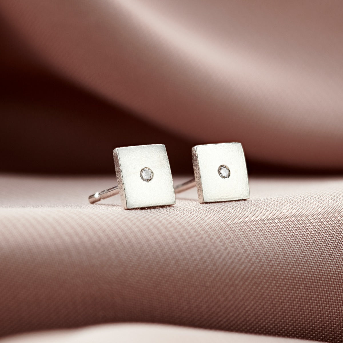 These beautiful Square Diamond Stud Earrings are made from high quality recycled sterling silver. Each stud is fi...