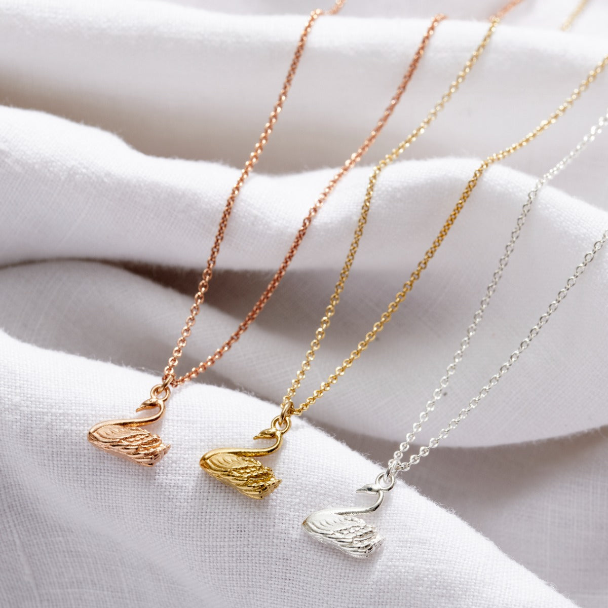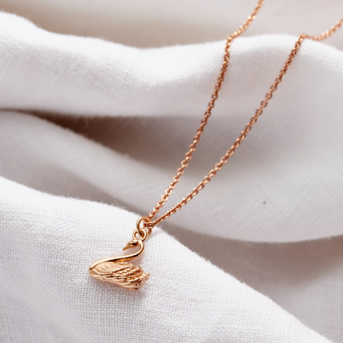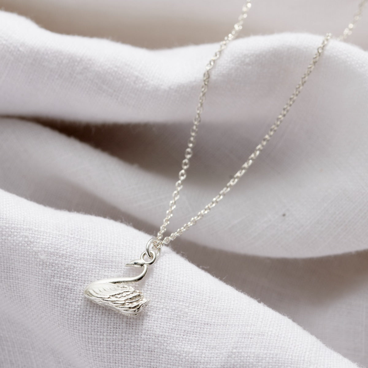 We love this elegant charm necklace. Made from Sterling Silver the design features a dainty swan charm which adorns one of our trace chain necklaces. Swans are believed to mate for life which makes this neck...