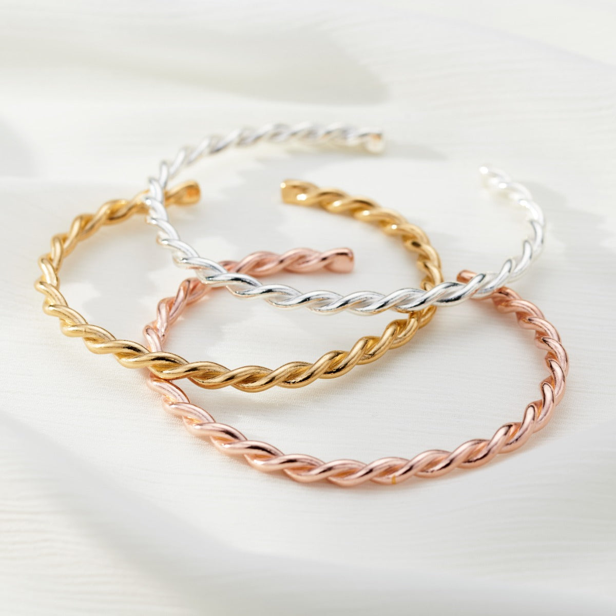 This unique cuff is made from high quality Sterling Silver in our Brighton workshop. This unique twisted style of the bangle is perfect for summer outfits and stylish edits. If you're looking for something w...
